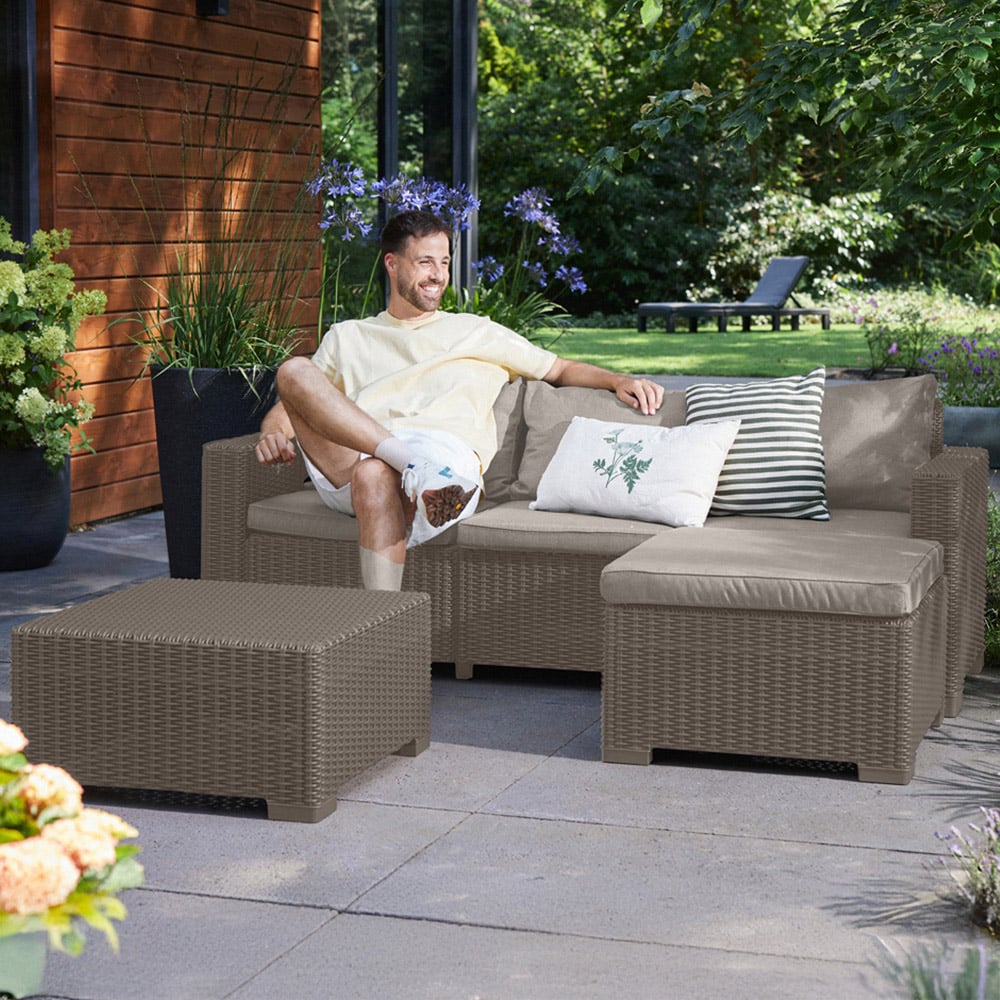 Keter California Cappuccino 4 Seater Wicker Garden Chaise Longue Set