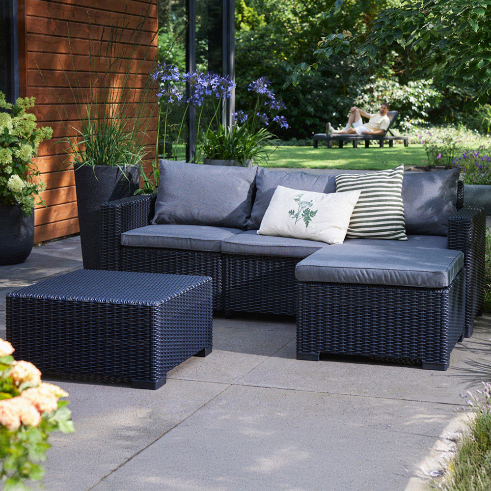Keter California Grey 4 Seater Wicker Garden Chaise Longue Set