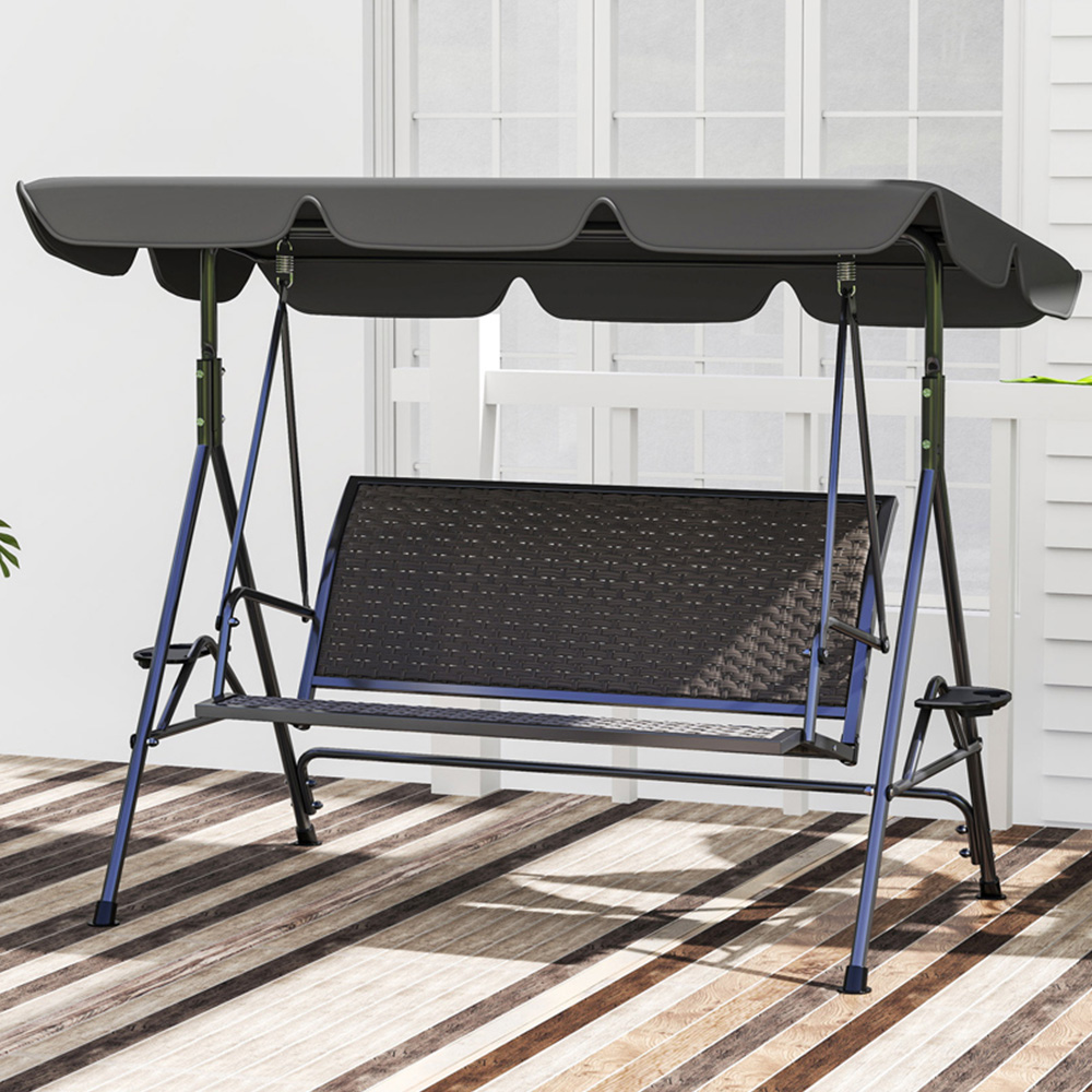Outsunny 3 Seater Grey Swing Chair with Canopy
