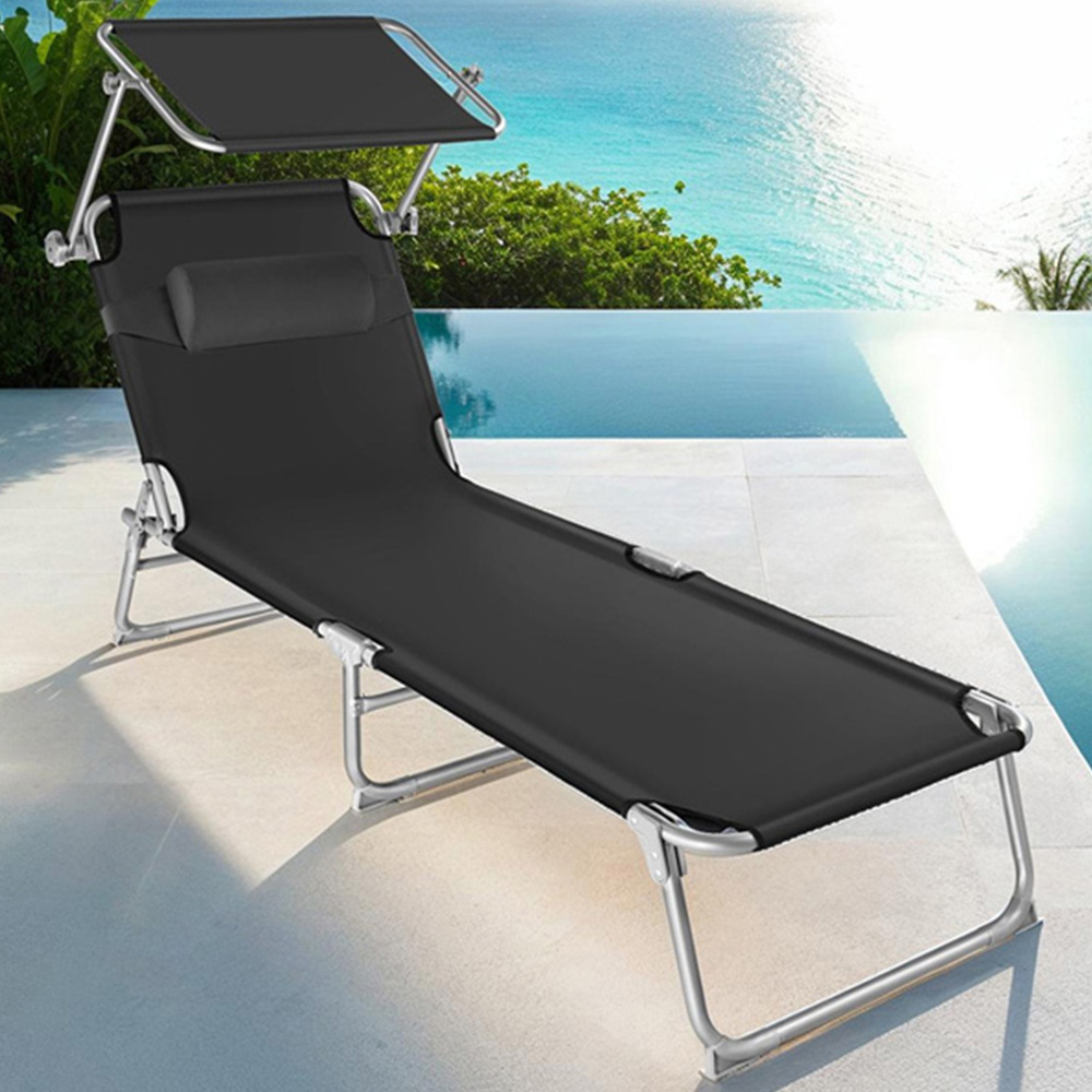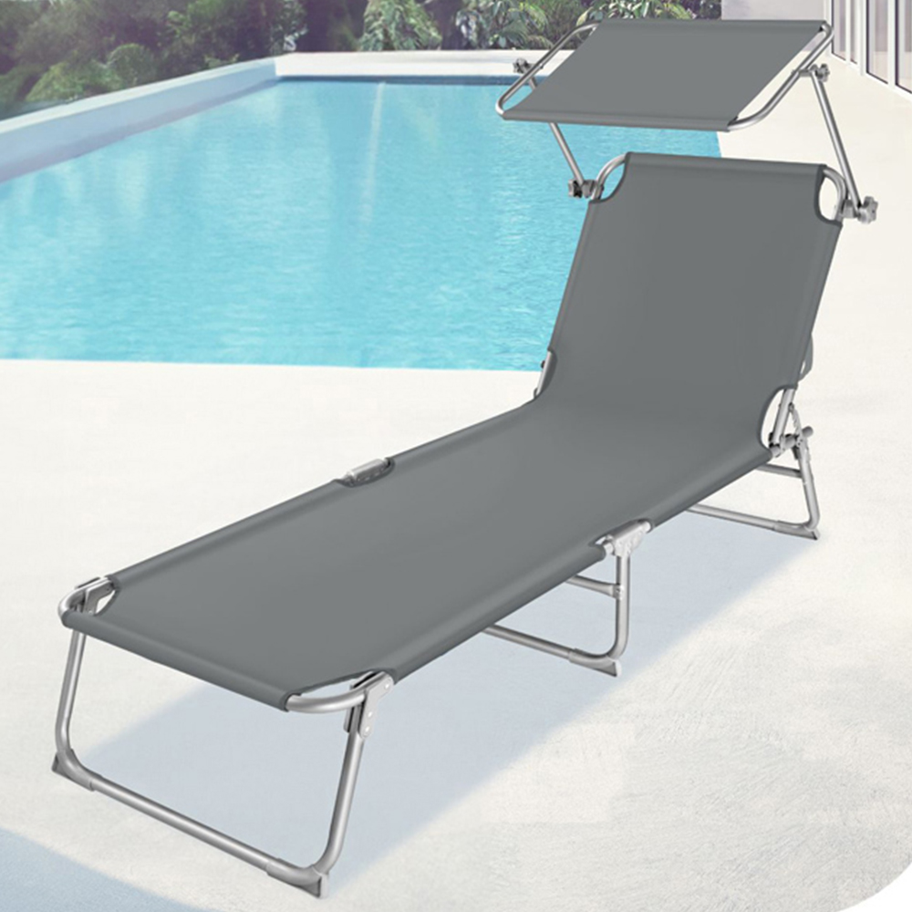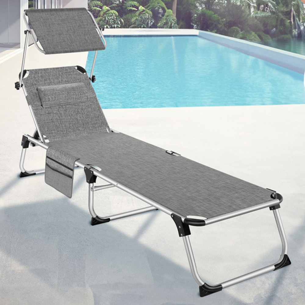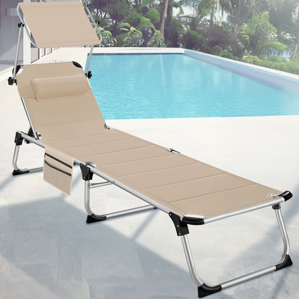 Outsunny Khaki Adjustable Folding Sun Lounger