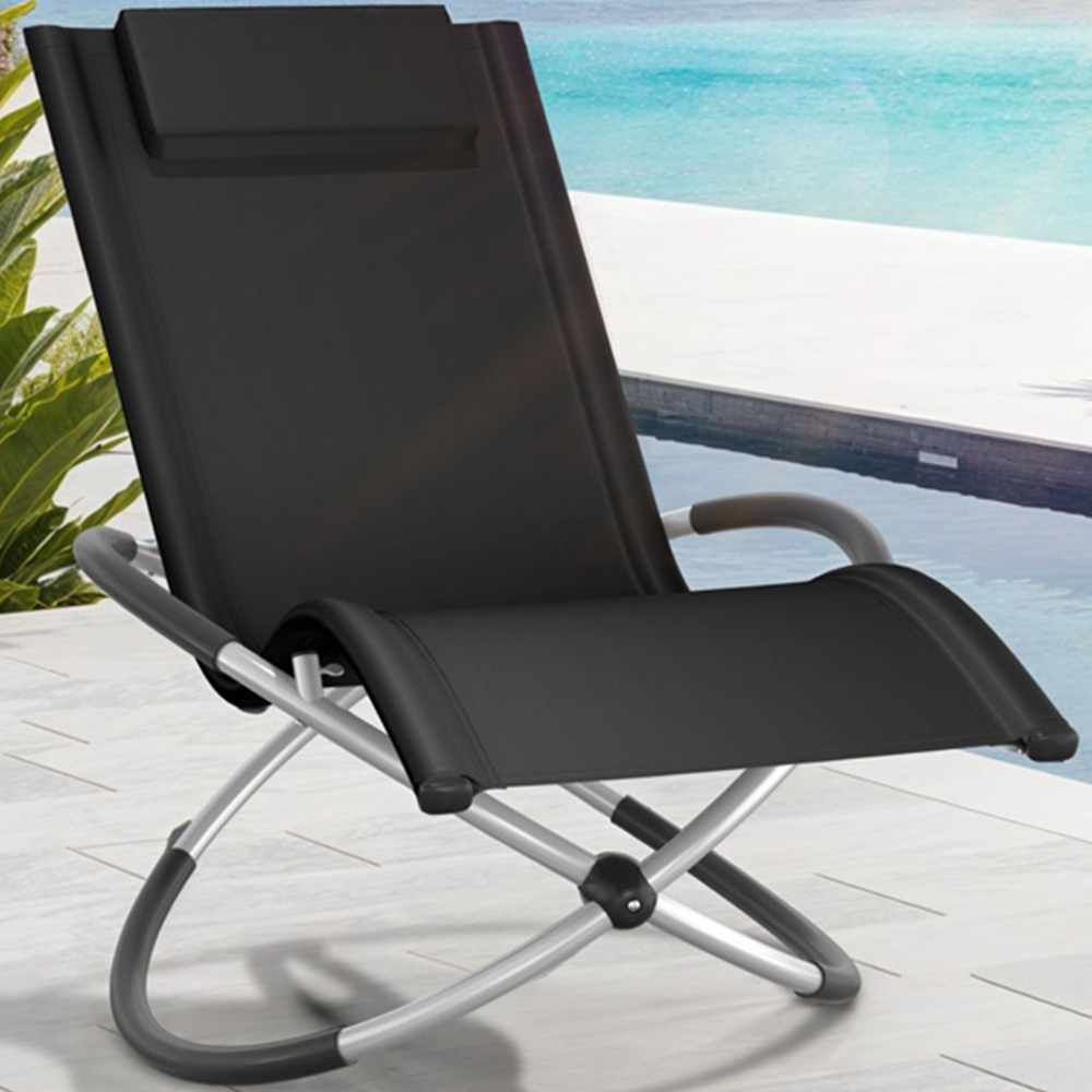 GardenKraft Louis Textile Black and Grey Rocking Lounger