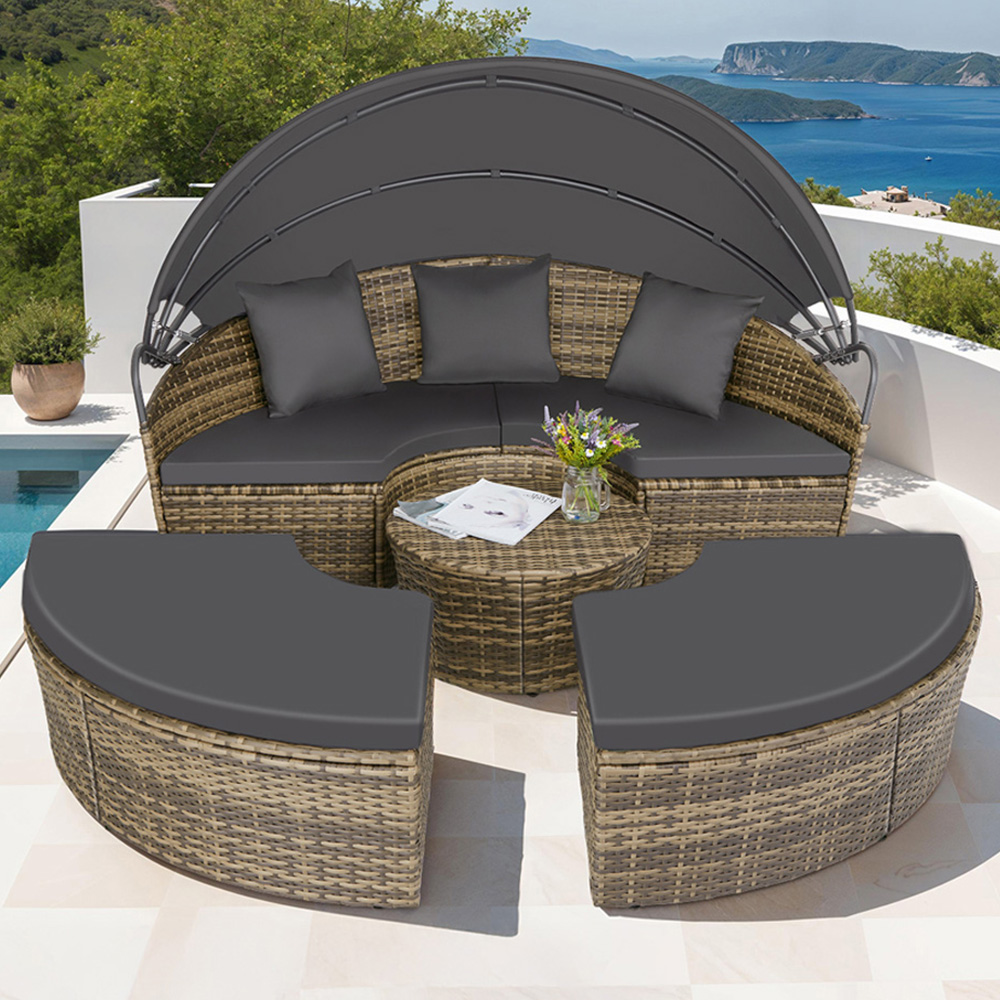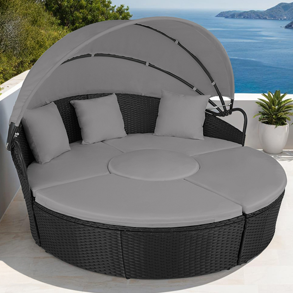 tectake Oceane Black Sun Lounger with 5 Position Adjustable Backrest