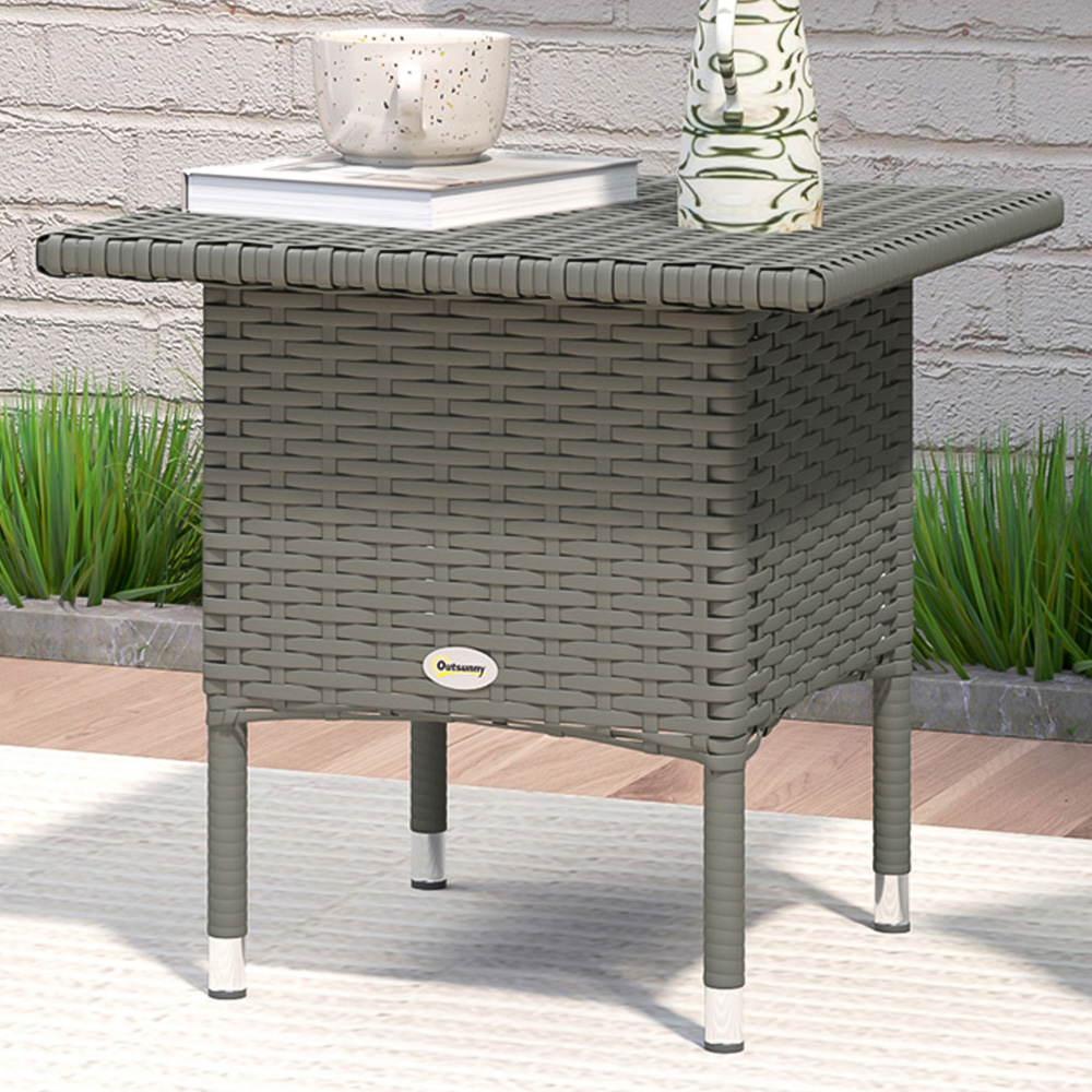Outsunny Grey PE Rattan Outdoor Coffee Table