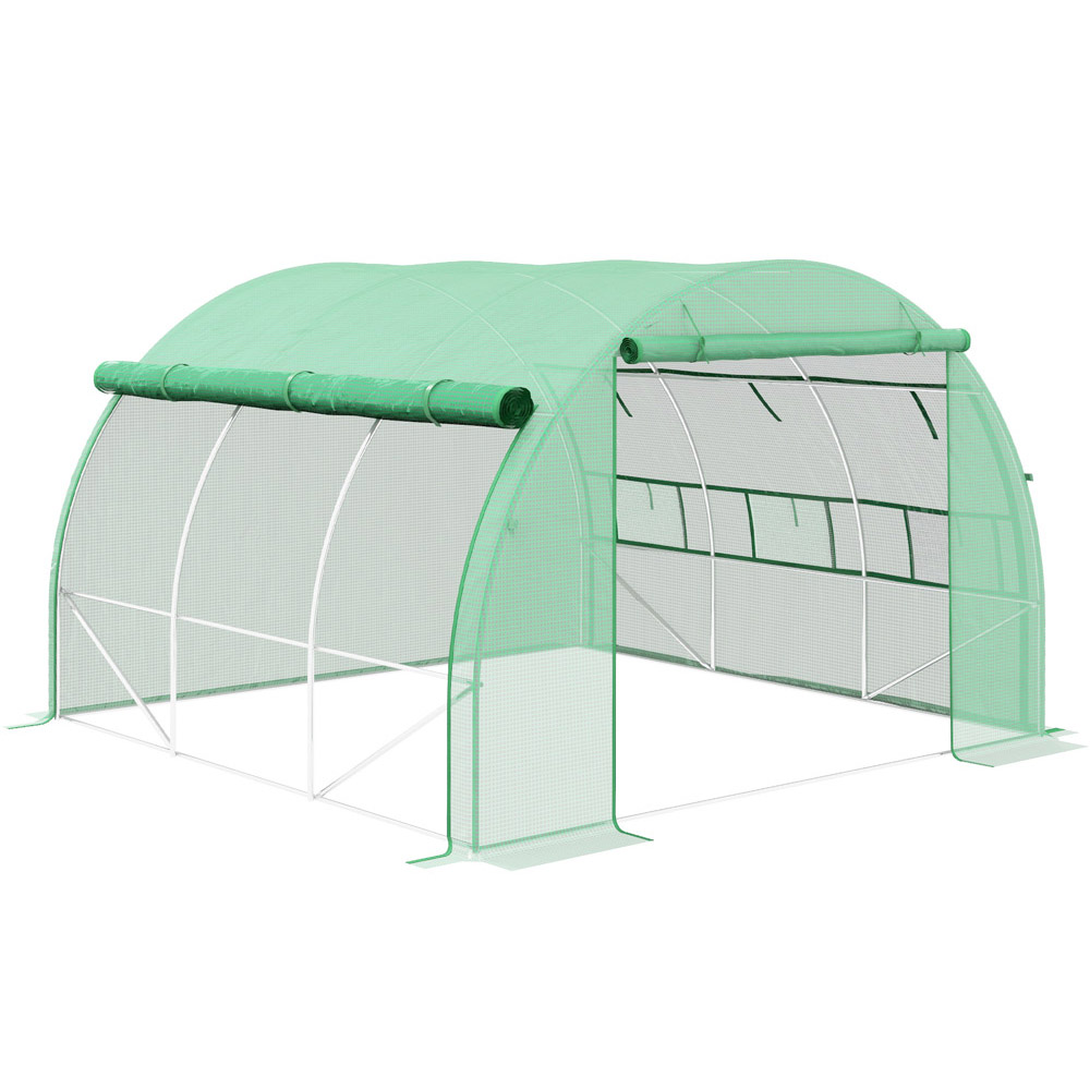 Outsunny Green Steel 10 x 13ft Walk In Polytunnel Greenhouse