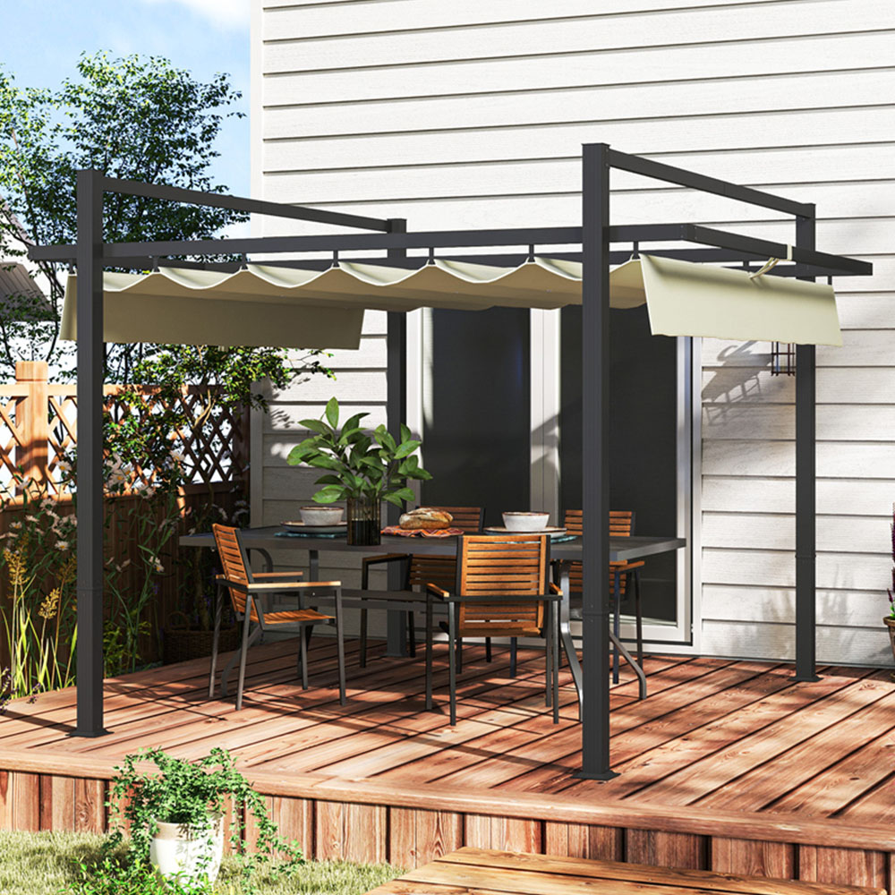Outsunny Grey Pergola with Retractable Roof 3 x 3m