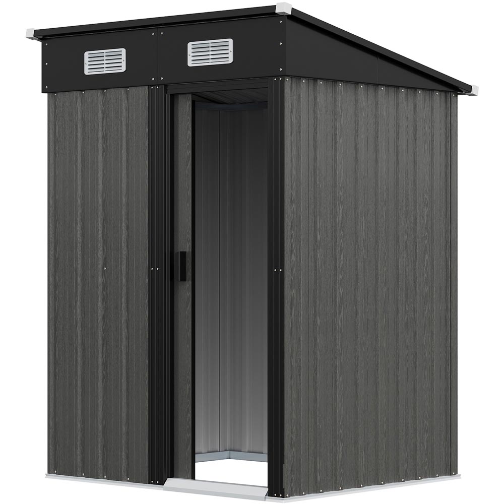 Outsunny Grey Metal Garden Shed with Sloped Roof and Air Vents