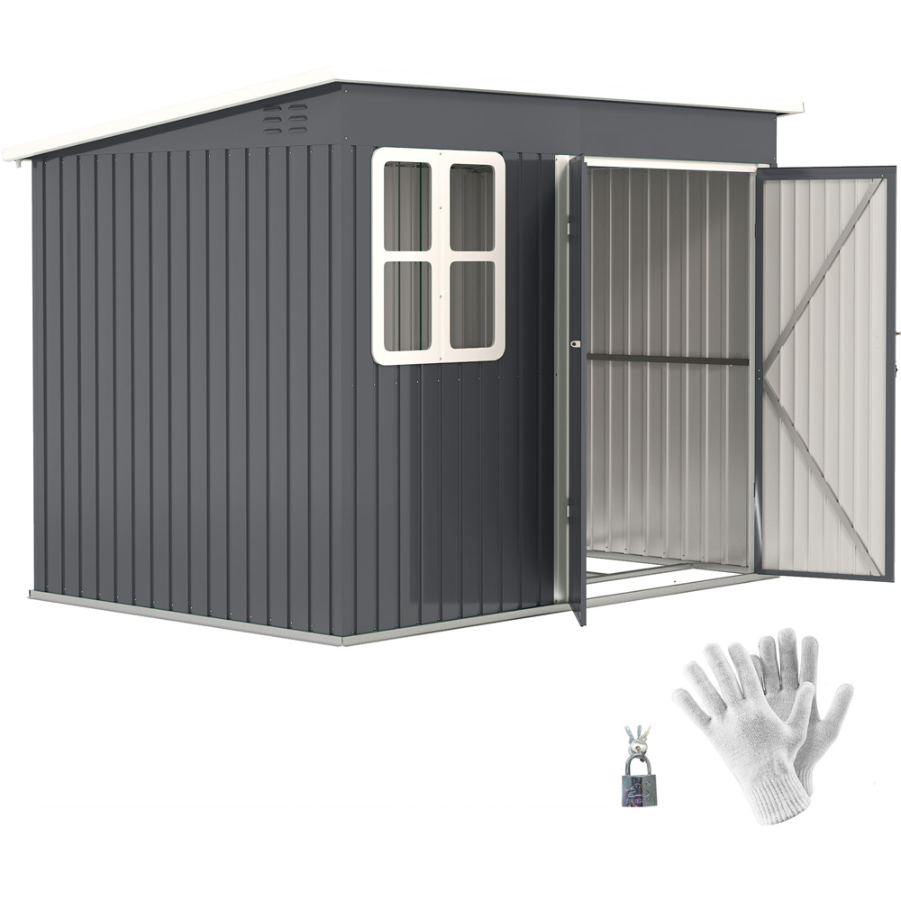 Outsunny Grey Steel Garden Shed with Foundation Kit 8.5 x 6ft