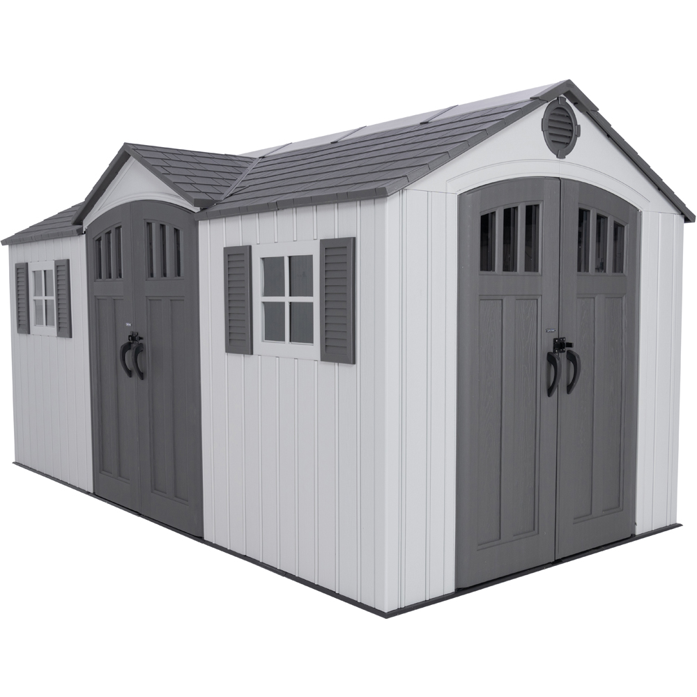 Durable, long-lasting and easy to install, our range of plastic sheds are available in a wide array of shapes, shades and sizes - making it easier than ever to find your perfect fit. Shop small and large plastic storage sheds to meet any of your needs. From plastic bin stores to spacious 11x21ft models, our range of plastic garden sheds includes something for every storage need. Bi-fold doors mean that you can store large garden furniture with ease, while the addition of a tool storage solution will help to keep DIY and gardening essentials organised.