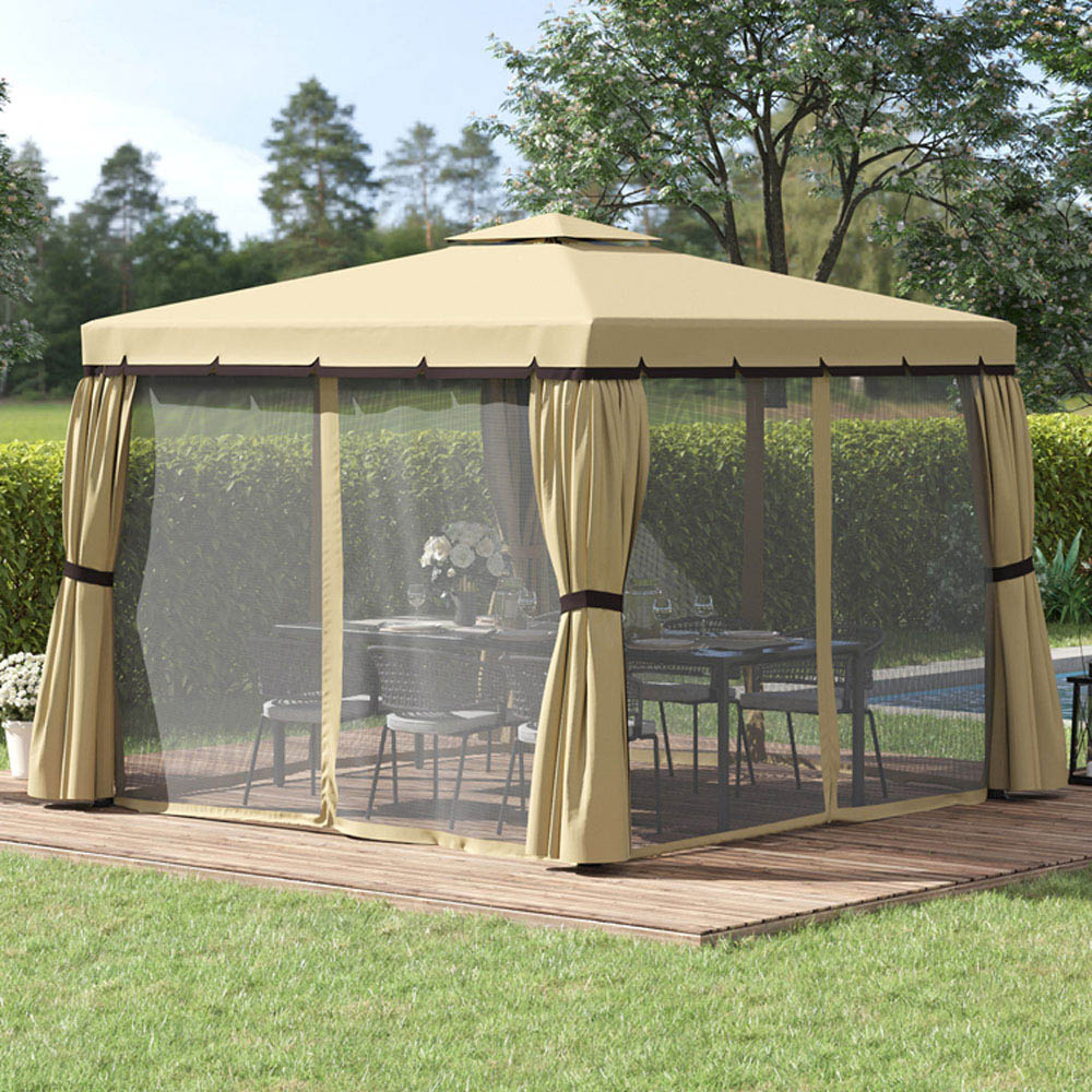 Outsunny 3.3 x 3.3m Beige Double Roof Pop Up Gazebo