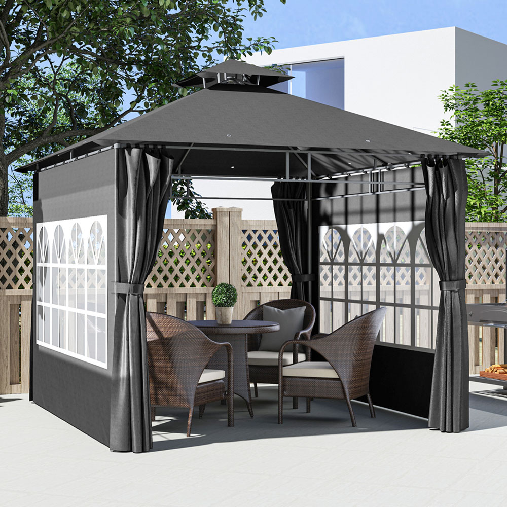 Outsunny 3 x 3m Grey Steel Frame Patio Gazebo with Mesh Sidewalls