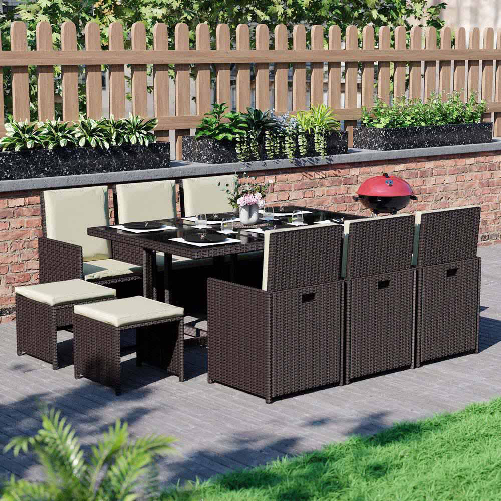Garden Vida Cuba Rattan Effect 10 Seater Garden Dining Set Brown