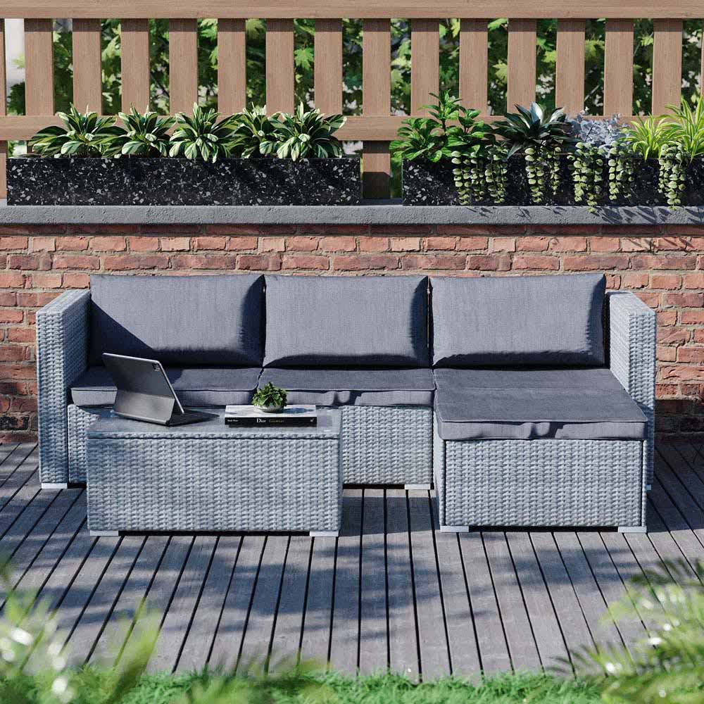 Garden Vida Hampton 4 Seater Grey Rattan Corner Lounge Set