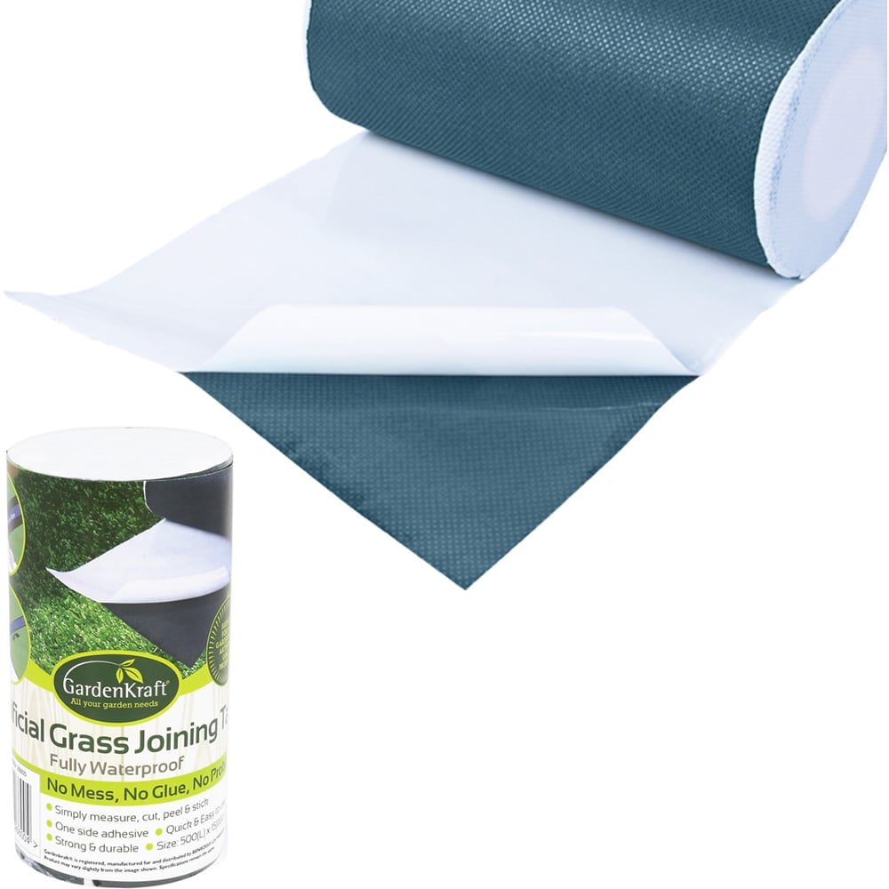 Transform your artificial lawn installation with GardenKraft's Self-Adhesive Artificial Grass Joining Tape. This essential accessory ensures a seamless, secure bond between turf sections, eliminating unsightly gaps and keeping your fake grass firmly in place. No glue needed – simply measure, cut, peel, and stick for a perfect fit. Its waterproof, extra-strong, and ultra-durable construction withstands all weather conditions, guaranteeing a long-lasting, professional finish. Perfect for creating a tight, solid bond between adjacent pieces. Size: 5m x 15cm.