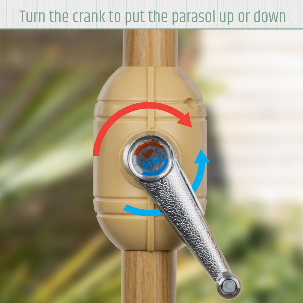 Gardenkraft Beige Wooden Crank and Tilt 6 Ribs Parasol 2.7m