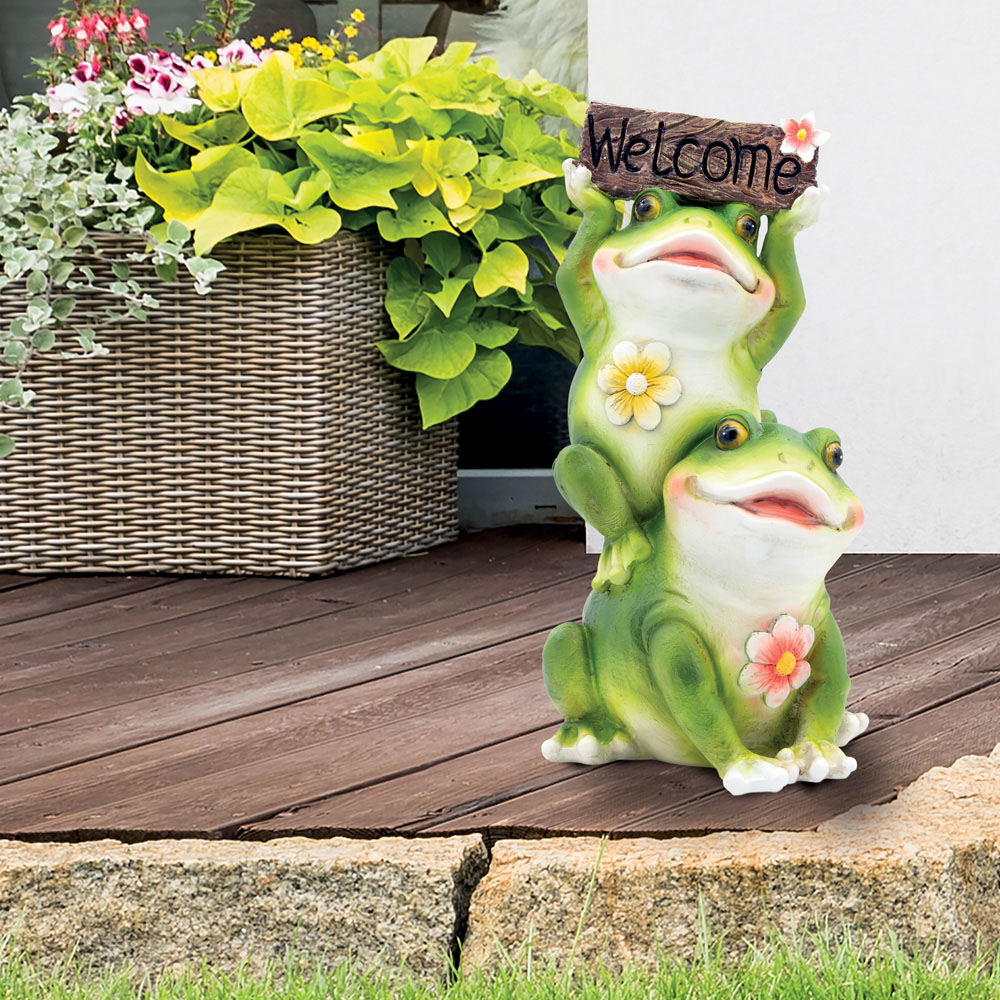 GardenKraft Cute Couple Frog with Welcome Sign Garden Ornament