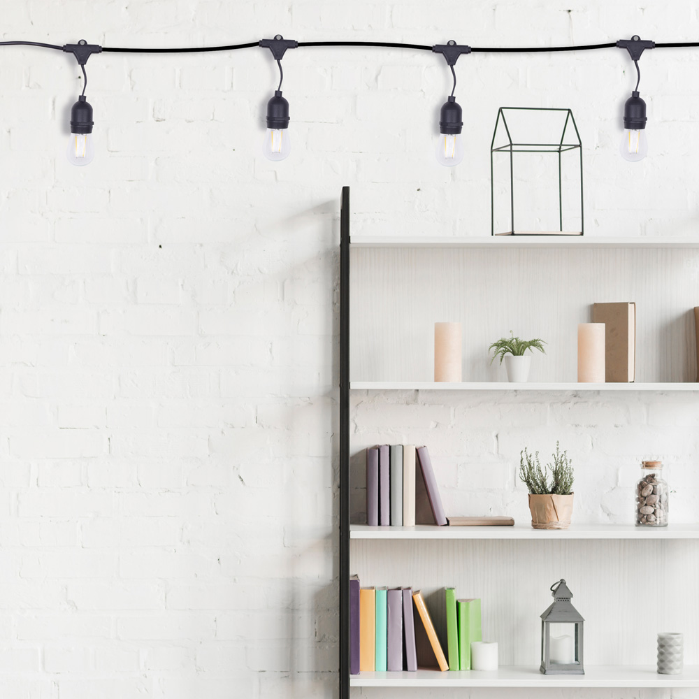 Elevate your indoor or outdoor space with the GardenKraft E27 Style Warm White Party String Lights (15 bulbs). These versatile lights, perfect for year-round use, boast a 15-meter length for generous illumination. Designed with IP65 weatherproof standards for durability, remember to keep the plug covered outdoors. Easily extend your lighting display by connecting two sets together using the convenient end connectors—ideal for larger areas. Simple plug-and-play setup lets you enjoy the warm white glow instantly, creating a charming and inviting ambiance with its E27 style bulbs.