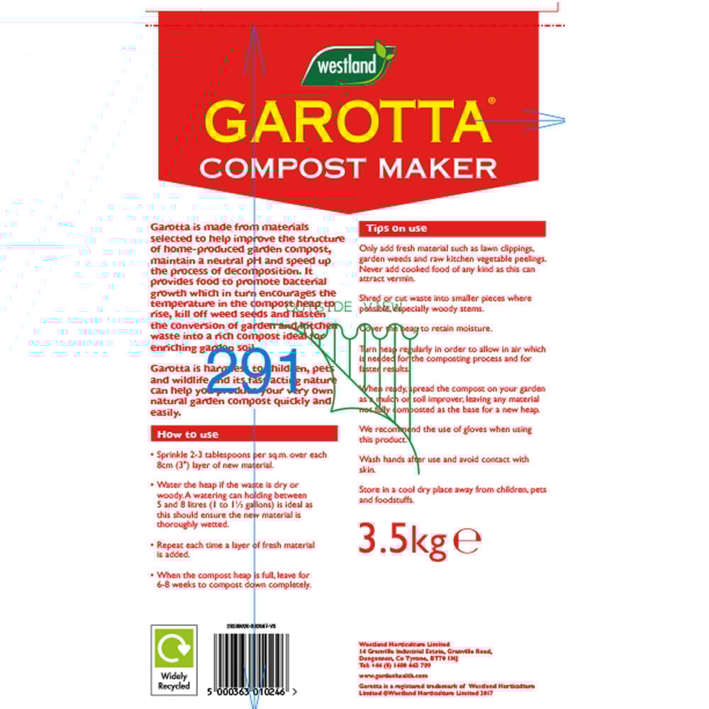 Accelerate your home composting with Garotta Garden Compost Maker. This ready-to-use formula boosts bacterial activity, generating heat to destroy weed seeds and significantly speed up the composting process. Simply add it when replenishing your compost heap or bin. Remember to always cheque the label and accompanying instructions before use.