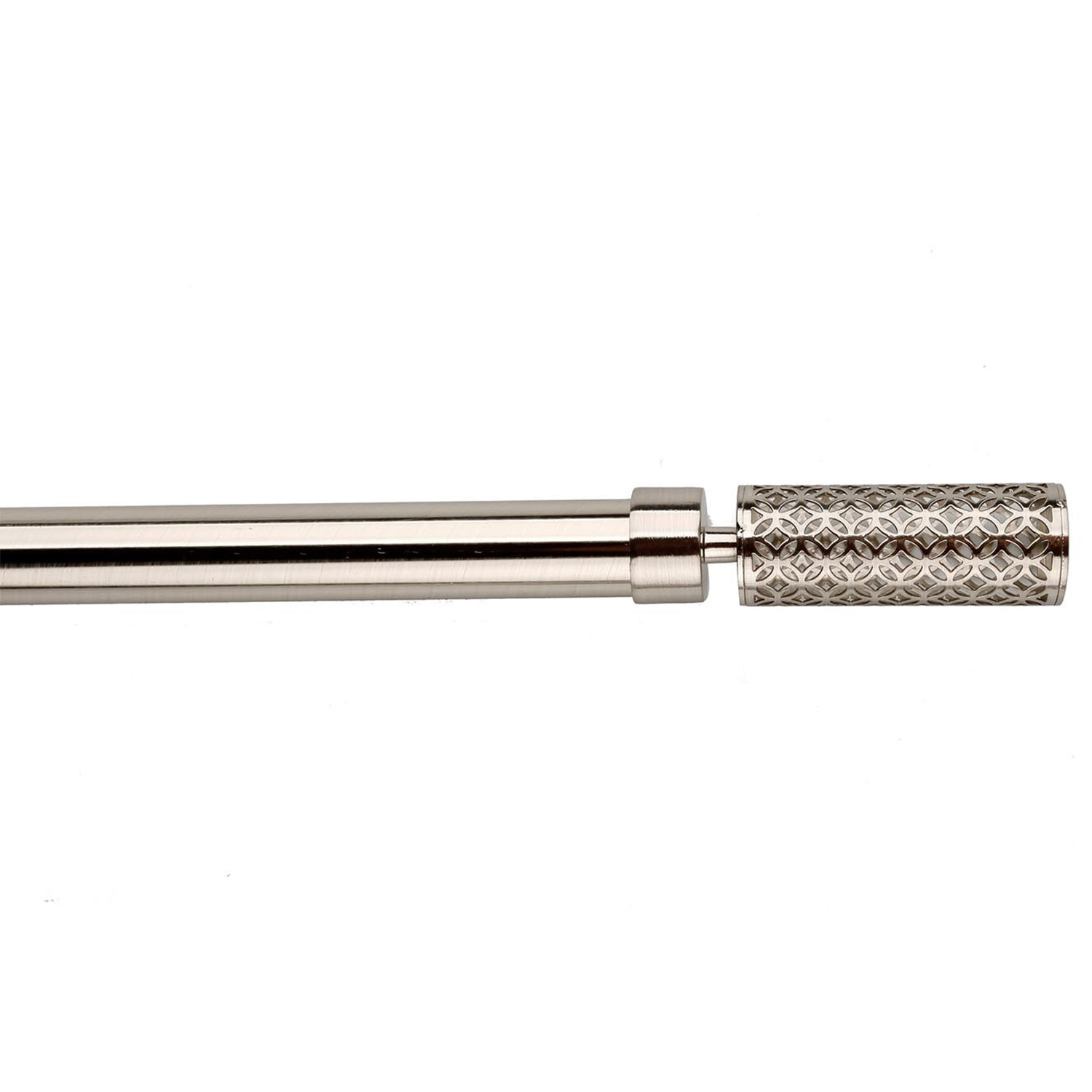 This 120cm silver curtain pole offers a sophisticated way to enhance your window. Featuring geometric pattern finials, it adds a subtle modern touch to any room. This pole complements any curtain design, completing your space.