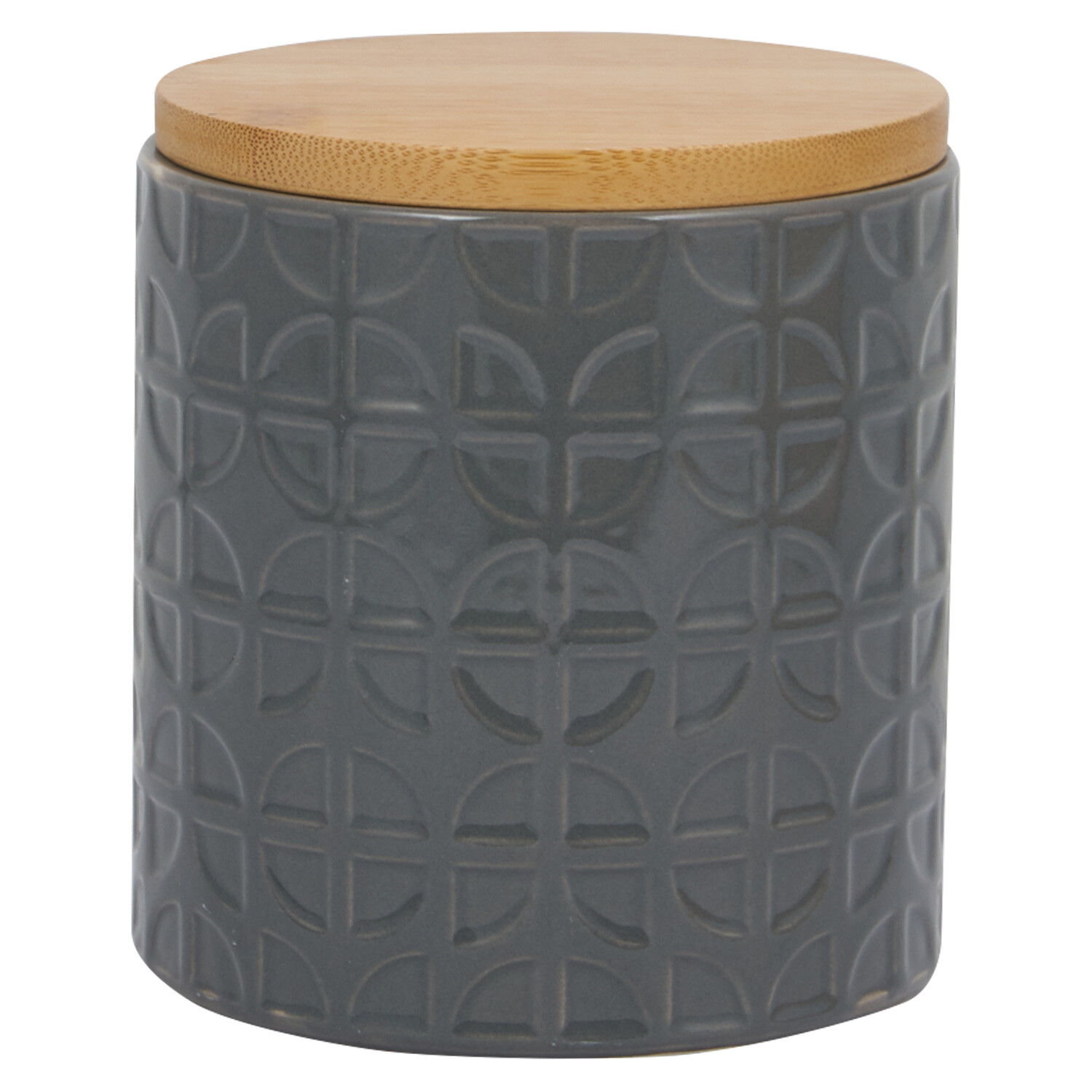 Add a touch of retro charm to your kitchen with this Geo Debossed Biscuit Canister. The debossed, abstract, repeating pattern recalls classic 60s and 70s design, adding a touch of style while keeping your biscuits fresh. The bamboo lid features an airtight silicone seal, ensuring your biscuits stay crisp and your kitchen remains organised with a hint of simple elegance.