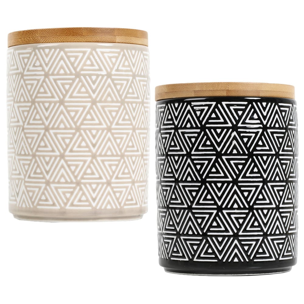 Upgrade your kitchen storage with the stylish Geo Triangles Canister. This canister boasts a striking geometric triangle design and an embossed glaze finish, available in two colours. Perfect for storing tea, coffee, and more, it features a practical bamboo lid with an airtight silicone seal to keep contents fresh. A beautiful addition to any modern kitchen, it’s part of the Geo Triangles collection for a coordinated and contemporary look.
