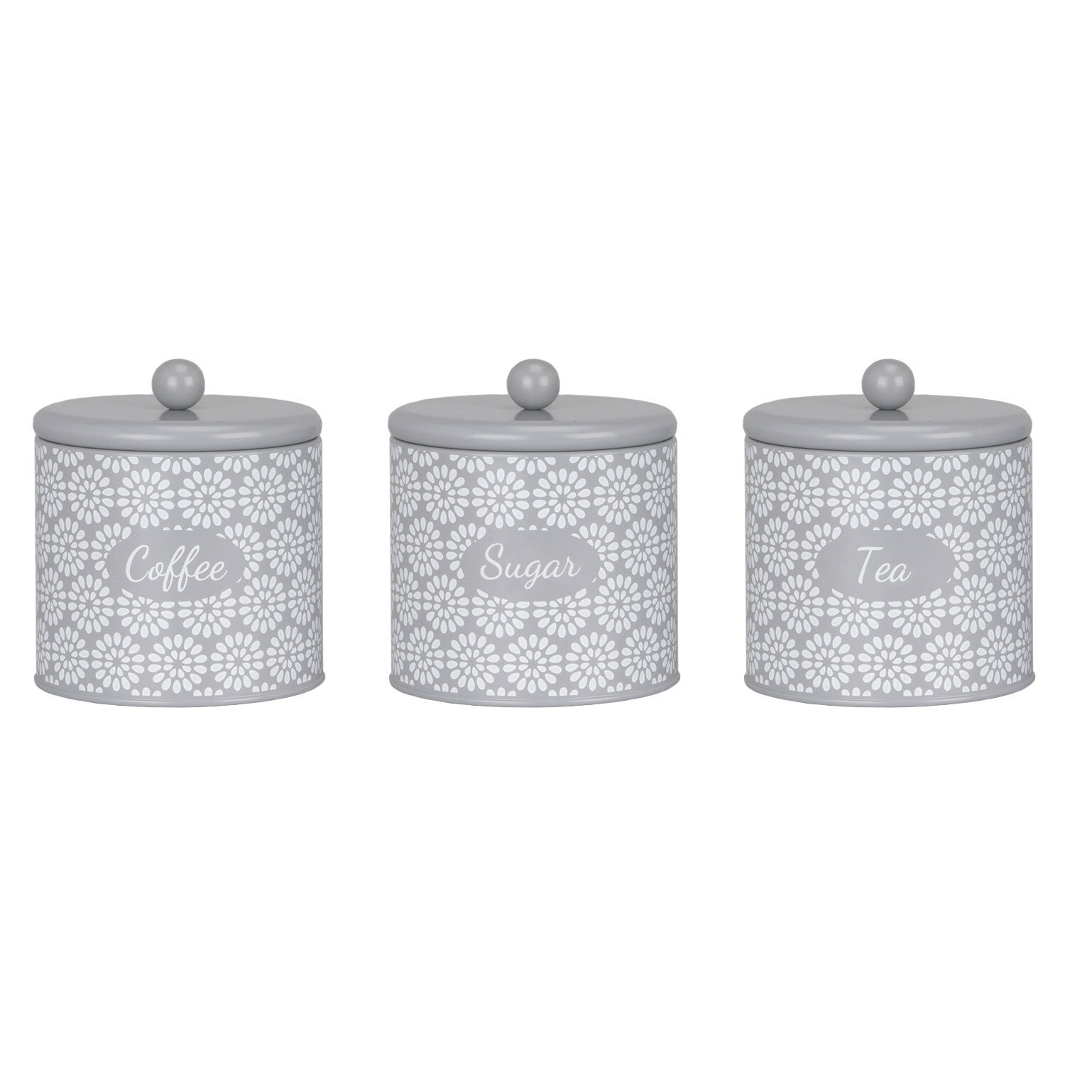 Add a touch of charming style to your kitchen with this Geometric Blossom Canister Set. Three canisters, each adorned with a delightful geometric floral design and clearly labelled for coffee, tea, and sugar, make grabbing your morning essentials a breeze. Airtight silicone seals keep contents fresh, and the cute little bauble handles add a touch of whimsy and make opening effortless.