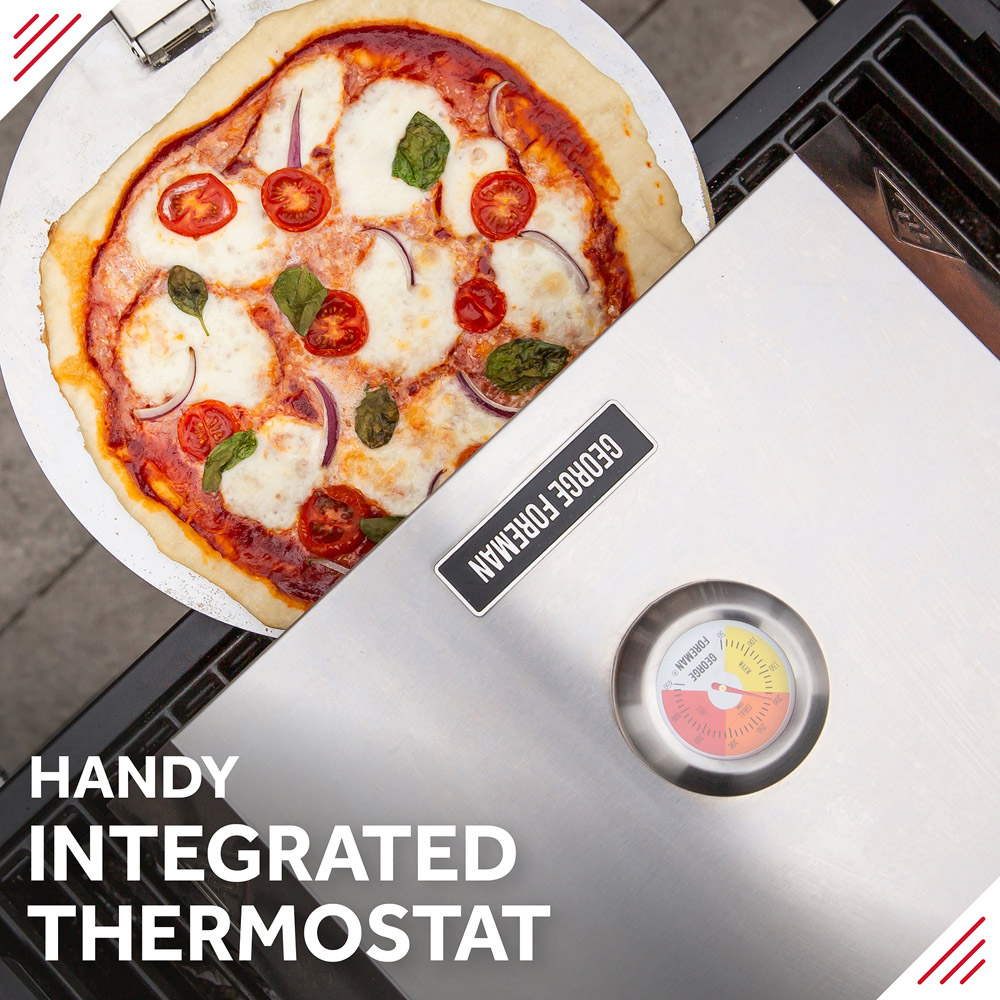 Elevate your outdoor cooking with the George Foreman BBQ Grill Pizza Oven, a brilliant addition for pizza aficionados. Designed to bring authentic, gourmet pizza to your garden, this pizza oven is guaranteed to be the focal point at any gathering. The integrated thermostat allows precise temperature control, ensuring consistently delicious results every time.