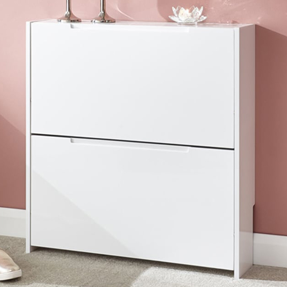 GFW 2 Tier White High Gloss Narrow Shoe Cabinet