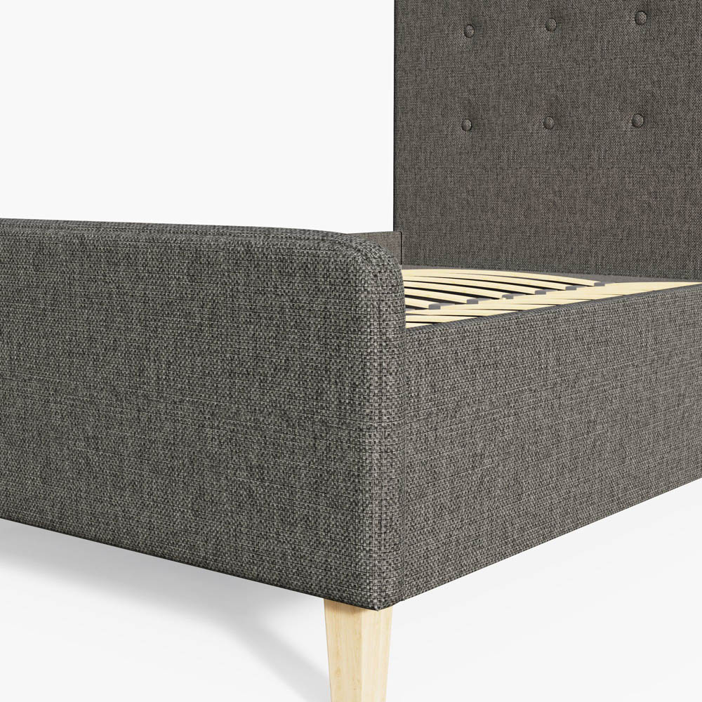The Ashbourne ottoman bed is as stylish as it is practical, a lovely addition to any contemporary home. This single bed frame features a raised storage area with a solid base, easily accessed for convenient storage solutions. Its sleek padded frame is upholstered in a smart dark grey hopsack fabric, complemented by pale wooden legs. A comfortable buttoned headboard adds a touch of boutique chic. The Ashbourne is perfect for creating a chic, understated bedroom and complements modern colour schemes. Size: 135cm.