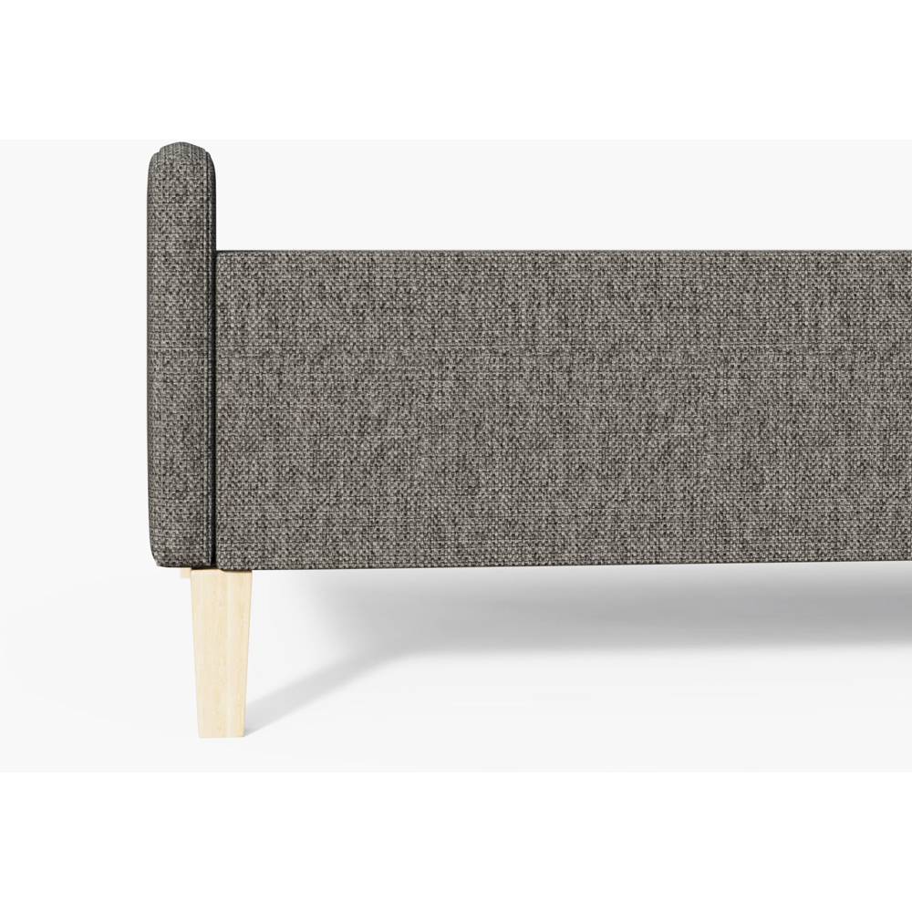 The Ashbourne single ottoman bed offers both style and practicality for the contemporary home. Its retro-inspired design features a raised storage area with a solid base, perfect for maximising space. The sleek padded frame is upholstered in a smart dark grey hopsack, complemented by pale wooden legs. A comfortable, buttoned headboard adds a touch of boutique chic. This single bed (90cm) is ideal for creating a stylish and minimalist bedroom.