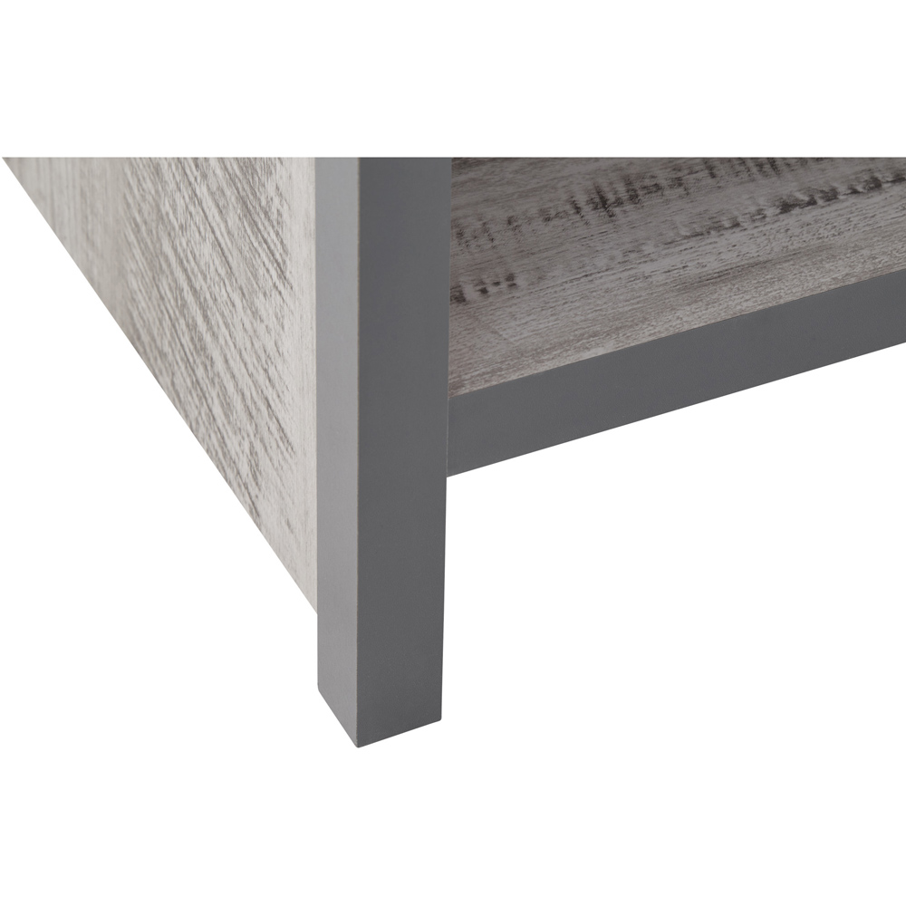 This chunky coffee table is a stylish addition to any contemporary living space. Its robust particleboard construction ensures lasting quality, boasting a durable distressed finish in complementary grey tones. The substantial 30mm top and deep frame create a solid and reliable feel. A full-width lower shelf provides ample space for magazines, books, remotes – or even cosy throws. Its urban-industrial aesthetic complements modern interiors without being overpowering. Practical and visually appealing, it',s the perfect blend of form and function.