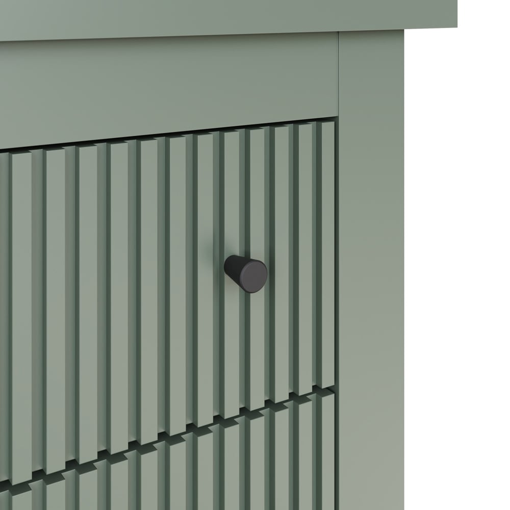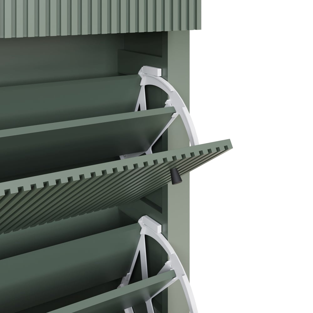 Keep your home neat and tidy with GFW Garrucha 2 Door Single Drawer Sage Green Deluxe Shoe Cabinet. Its contemporary ribbed design adds modern touch to any hallway or entranceway. With room for up to ten pairs of shoes behind two drop-down doors, plus one handy drawer for smaller items, it’s the perfect storage solution. Finished in trendy sage green colour with black metal accents, apart from storing your shoes, this shoe cabinet will also serve as stylish feature in your home.