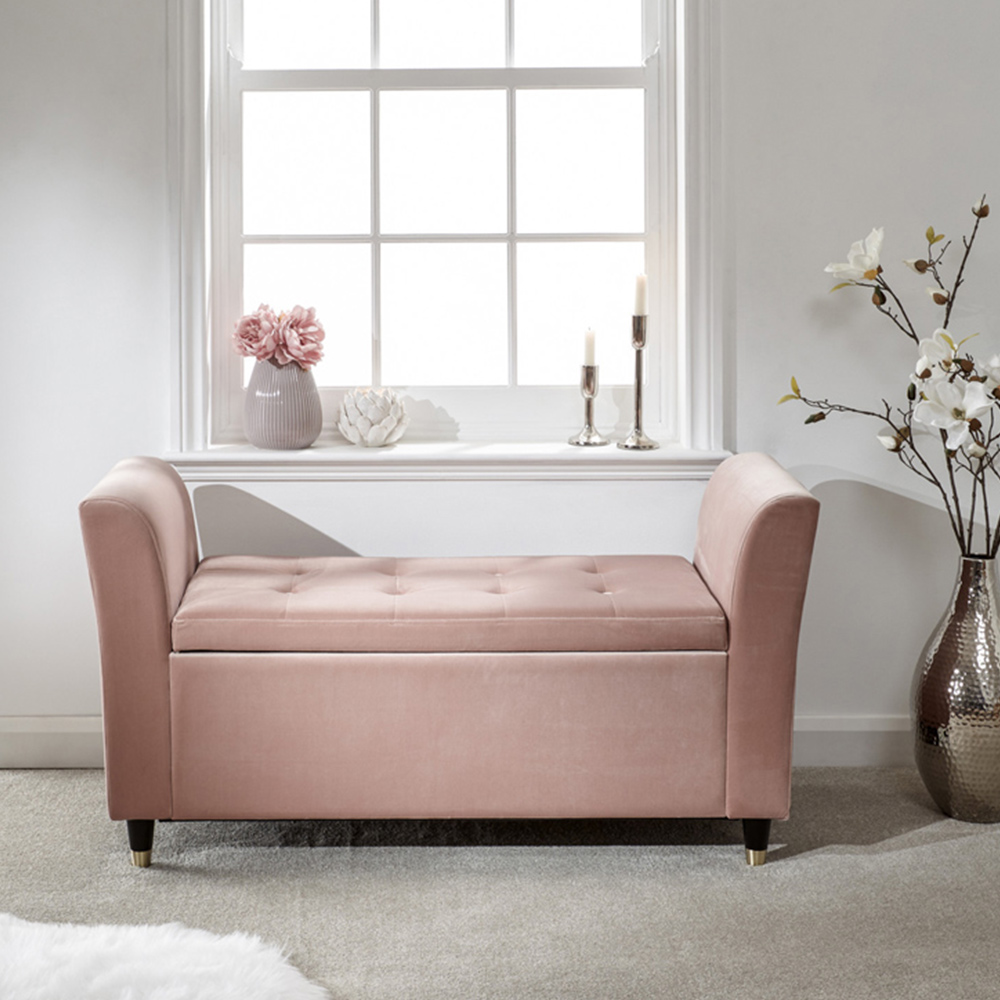 GFW Genoa Blush Pink Upholstered Window Seat With Storage