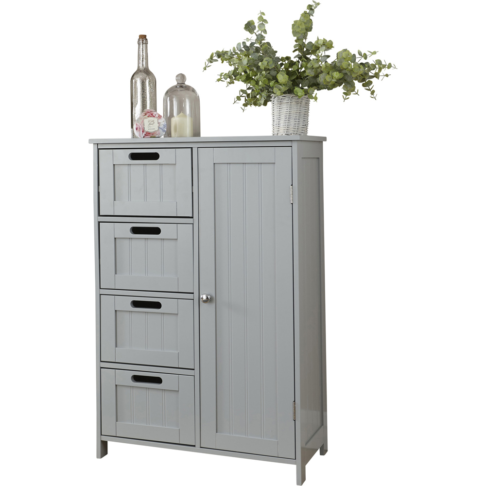 GFW Single Door 4 Drawer Grey Colonial Floor Cabinet