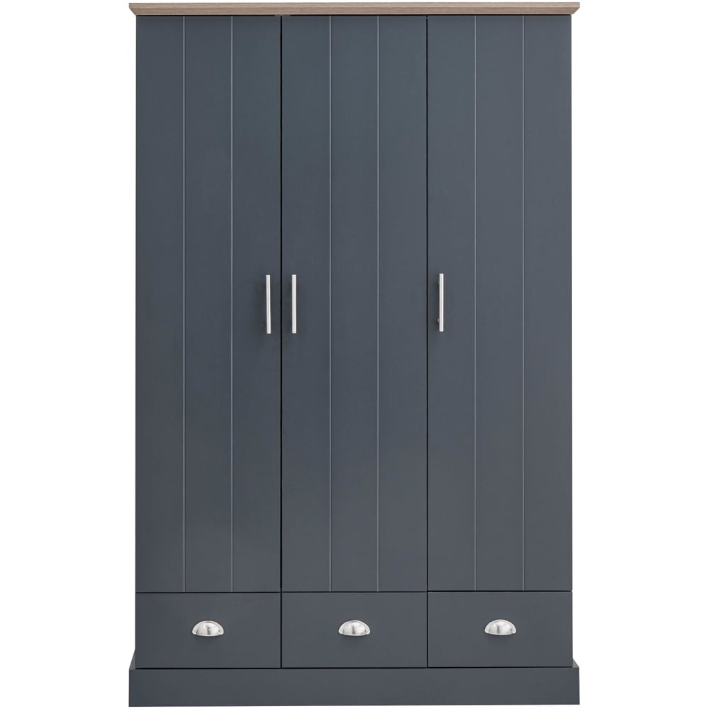 GFW Kendal 3 Door 3 Drawer Slate Blue Wardrobe