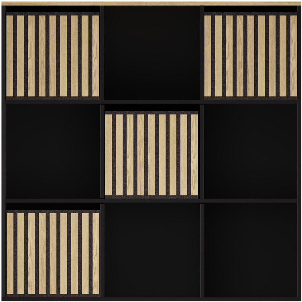 GFW Kube Black and Oak 5 Shelf 4 Drawer Storage Unit with Baskets
