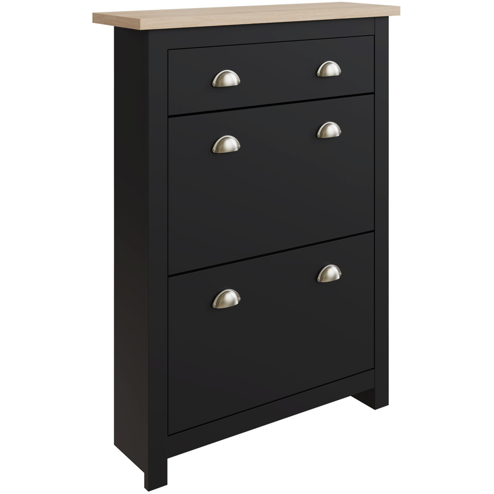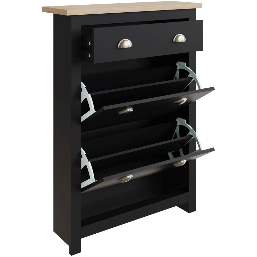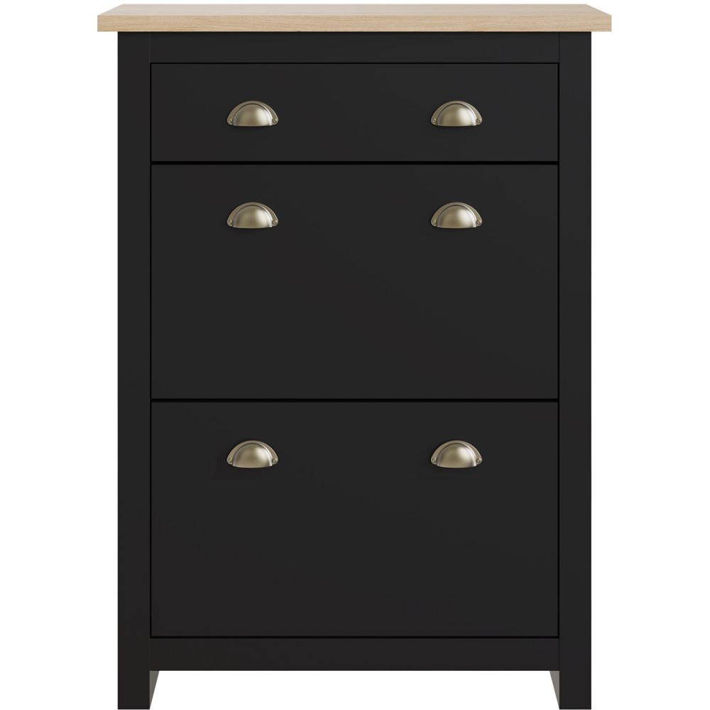 GFW Lancaster 2 Door Single Drawer Black and Oak Shoe Cabinet