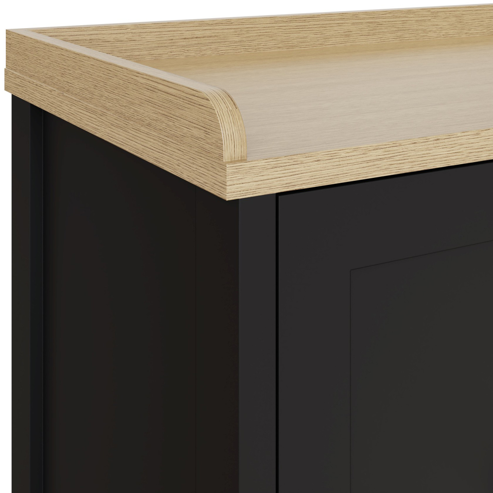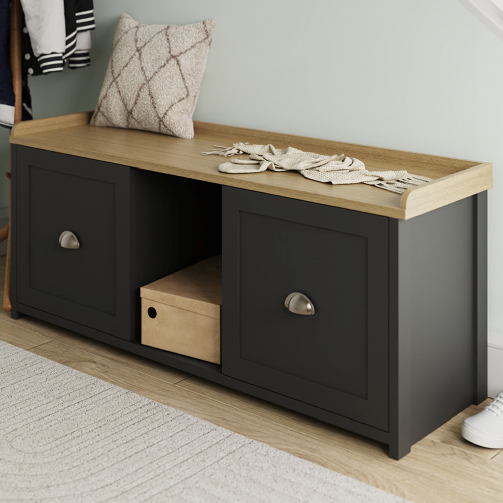 GFW Lancaster Black and Oak 2 Door Shoe Bench