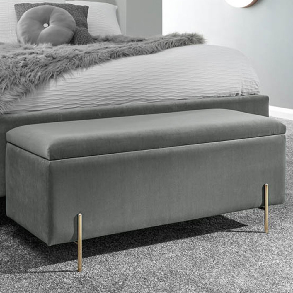GFW Mystica Grey Velvet Ottoman Storage Bench