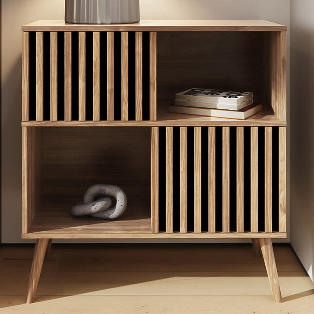 GFW Rowan Oak 2 Drawer 2 Shelf Louvered Compact Sideboard