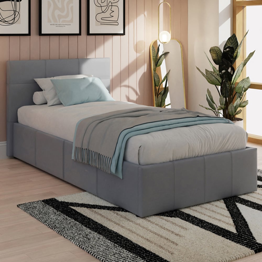 GFW Single Black Faux Leather End Lift Ottoman Bed with Bonnell Mattress
