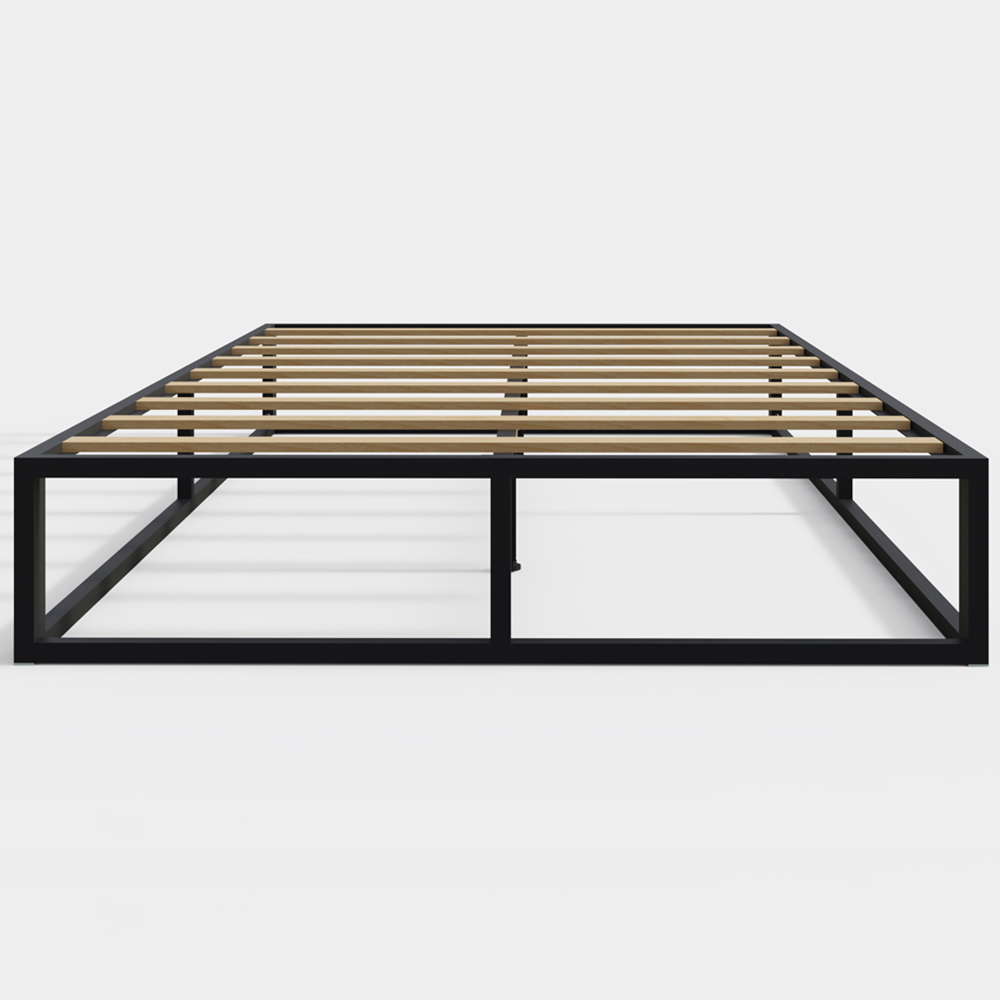 Elevate your bedroom',s aesthetic with this loft-inspired platform bed frame. Its contemporary design seamlessly complements diverse styles and colour palettes, offering unparalleled versatility. The straightforward assembly—a mere twelve bolts—and robust metal frame with thick wooden slats ensure both ease of setup and lasting durability. The cleverly packaged design allows for effortless manoeuvrability within your home, even up staircases.