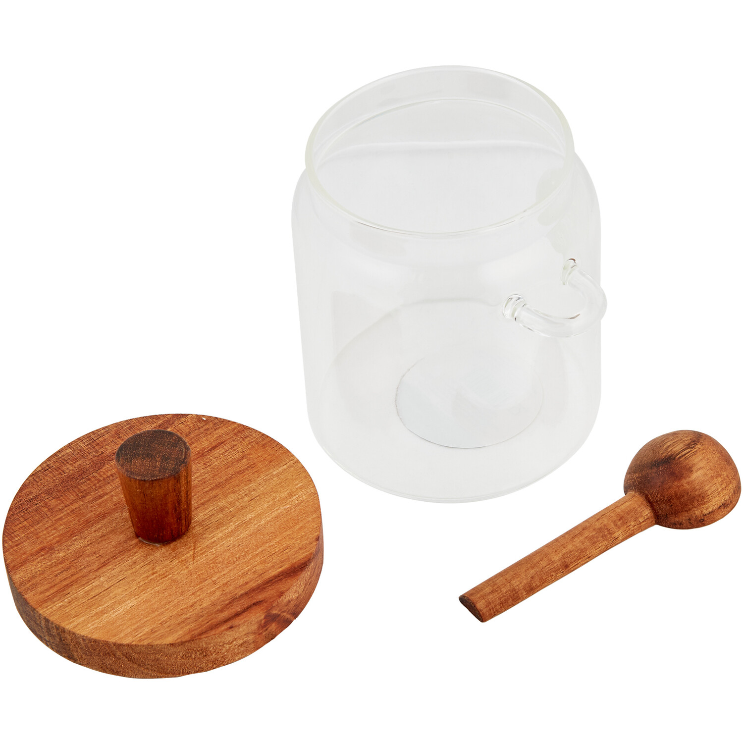 This glass storage jar provides a stylish and practical storage solution for any kitchen. Crafted from quality materials, its clear design allows you to easily see the contents, while the acacia wood lid creates an airtight seal to keep food fresh. The included acacia wood spoon, neatly stored on the side, ensures easy access to your stored goods. Perfect for dry foods like pasta, dried fruits, and nuts, as well as pickles, jams, and preserves. This jar is an amazing way to maintain the freshness of your stored food items.
