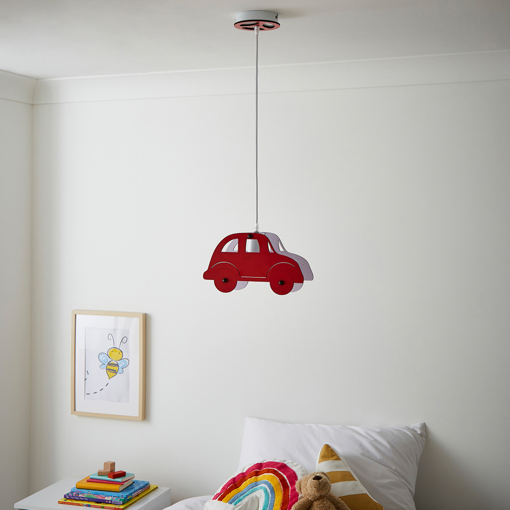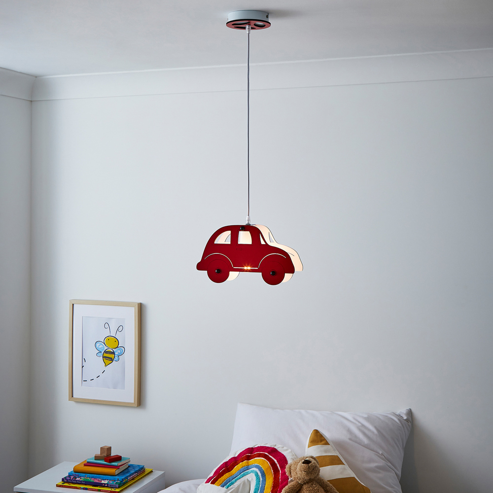 Brighten up your child's space with the GLOW CAR Ceiling Light, presented in a lively red finish. Shaped like a classic car, this ceiling light injects a playful and spirited vibe into any bedroom, playroom, or nursery. The E27 fitting ensures straightforward bulb changes, offering adaptable lighting options. With its detailed detailing and radiant colour, this light is ideal for budding car enthusiasts, bringing a lively touch to any room.
