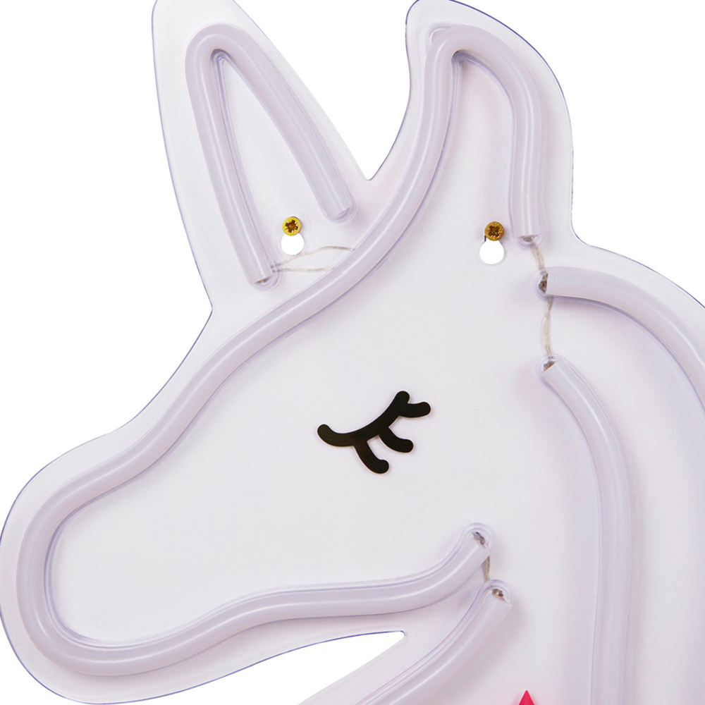 Bring a touch of enchantment to your décor with the GLOW UNICORN NEON LED Wall Light, featuring white and pink neons. This captivating unicorn silhouette radiates with vivid LED illumination, enhanced by delicate pink highlights and a striking white border. Watch as it conjures a dreamy, glowing ambience within any room.