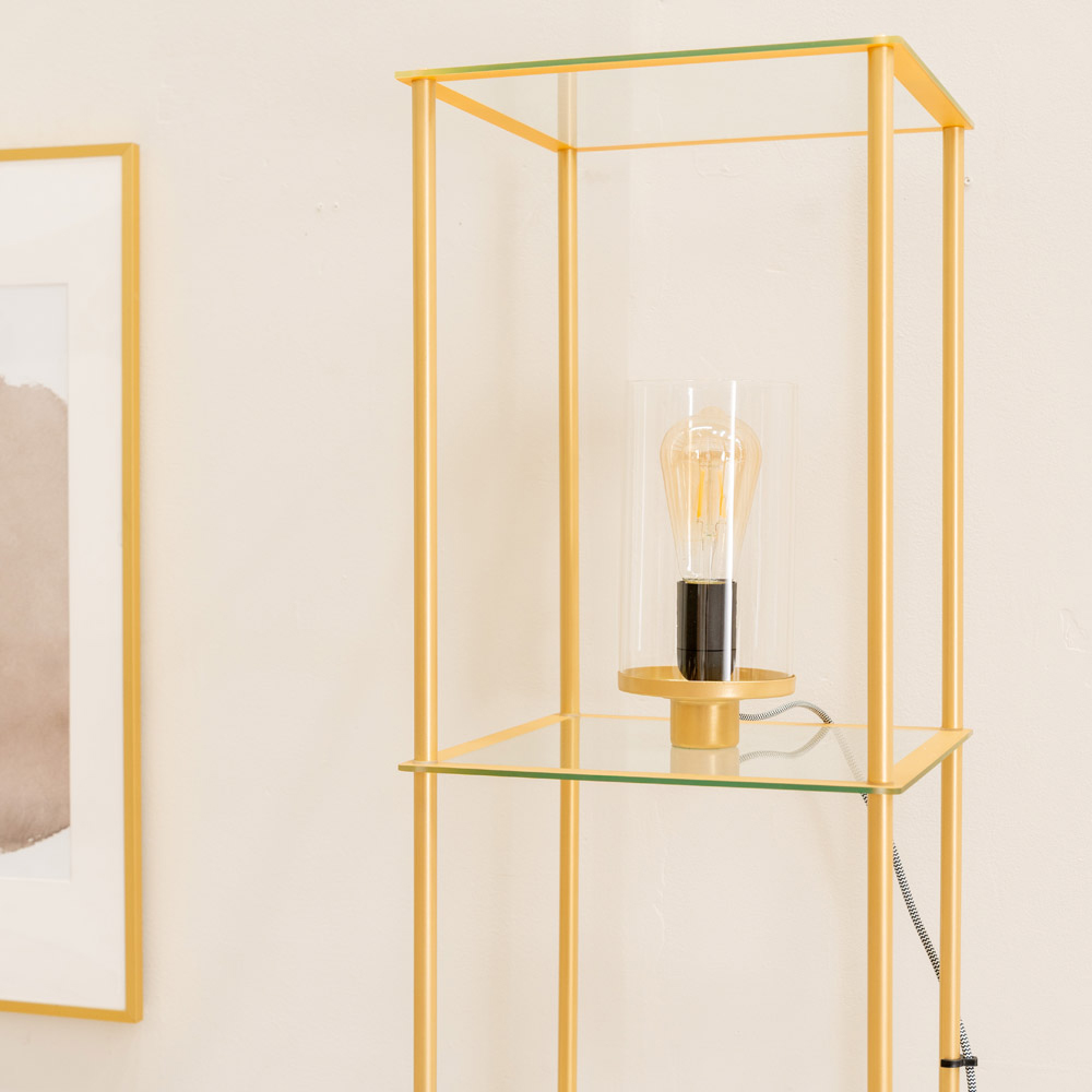 Elevate your space with the Gobie 4-shelf floor lamp. Its gold metal frame and clear glass shelves offer a sophisticated design, combining elegant lighting with practical storage. The integrated LED provides a warm ambient glow, while the four shelves offer convenient storage for your essentials. The energy-efficient LED bulb is included for immediate use. Dimensions: H169 x W30 x D30cm. A 12-month warranty is included.