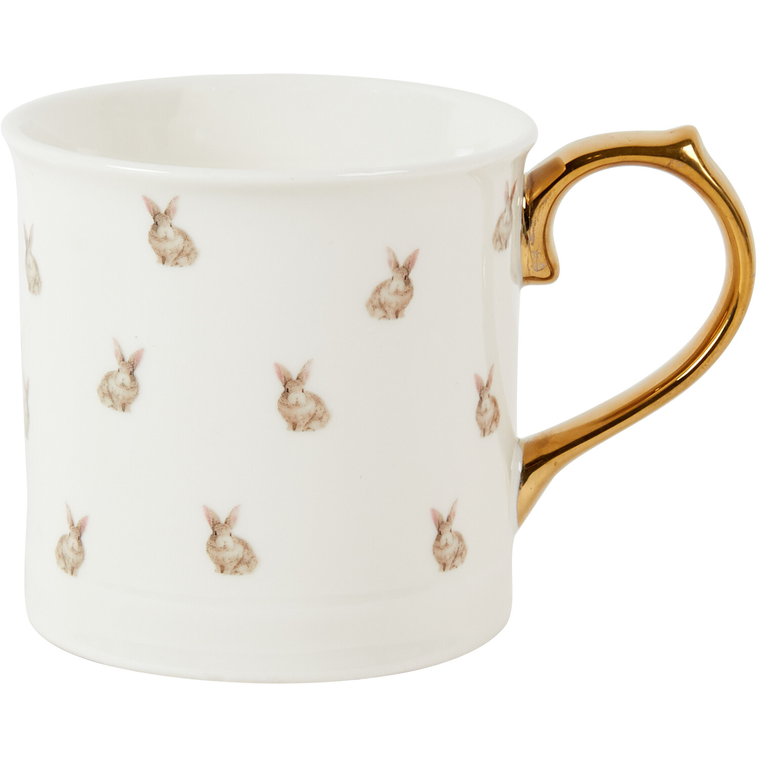 Elevate your daily beverage ritual with this charming mug. Its delightful design – available in bunny or bee print – adds a touch of whimsy to your kitchen. The comfortable, golden-coloured handle provides both convenience and a touch of elegance. Perfect for coffee, tea, hot chocolate, and more, this versatile mug is a stylish addition to any home.