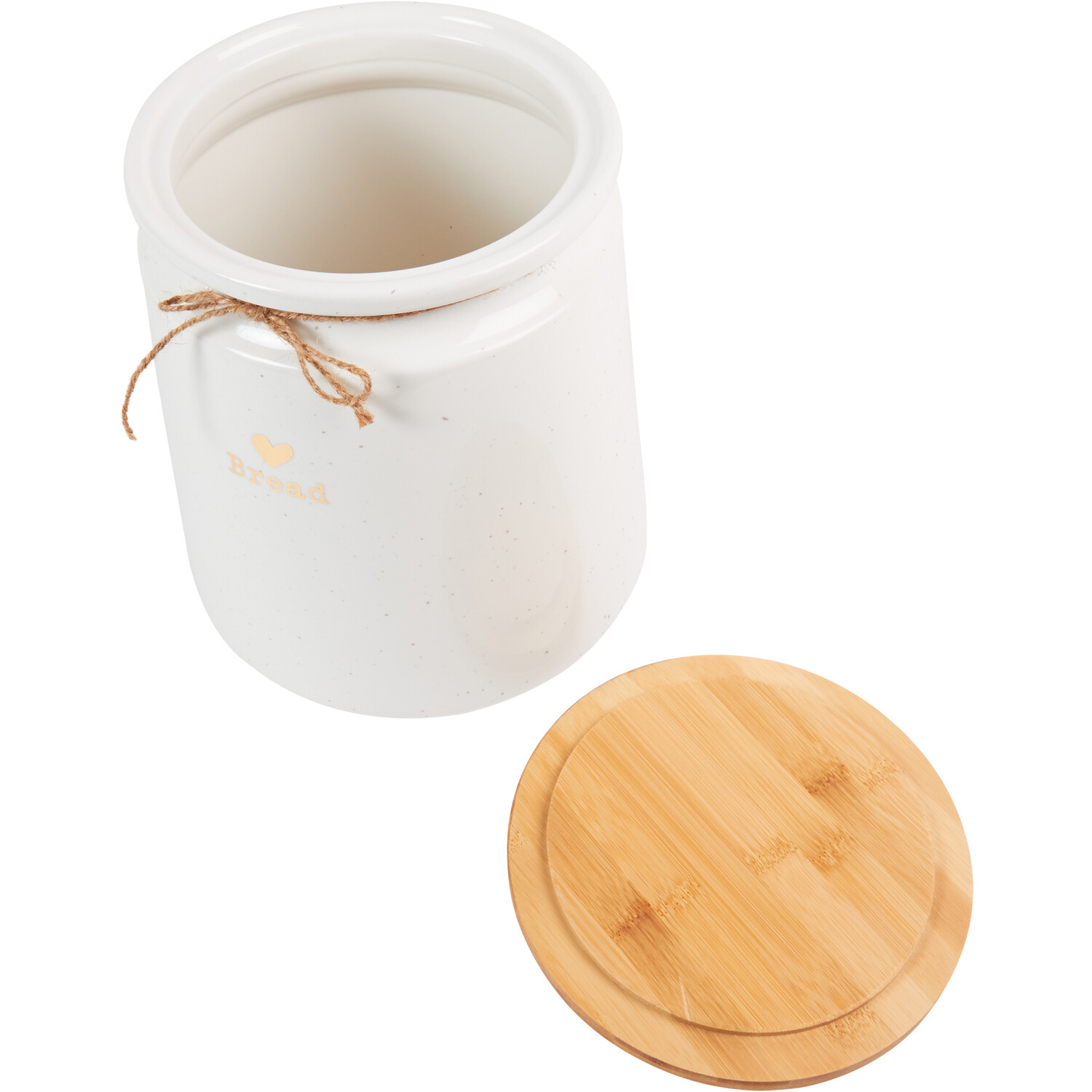 Give your kitchen a touch of charm with this Gold Heart Bread Canister, designed to keep your bread and baked goods delightfully fresh for longer. Its eye-catching conical form is adorned with a gold foil heart and complementary text, enhanced by a grey speckle splash effect and twine detail for a truly attractive finish. The bamboo lid, complete with an airtight silicone seal, ensures practical functionality. Part of the comprehensive Gold Heart kitchen and tableware collection, this canister allows you to curate a coordinated and stylish aesthetic throughout your kitchen.