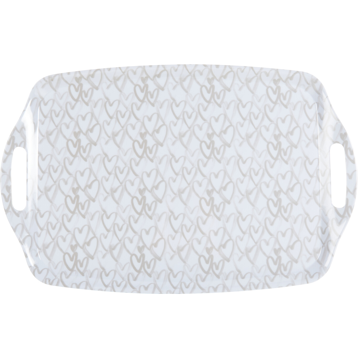 Introduce a touch of charm to your living space with this Gold Heart Large Tray. Featuring a delightful taupe heart design with an artistic, painterly effect, this tray is both stylish and practical. Crafted from hardwearing, easy-to-clean materials, it's perfect for transporting drinks, carrying plates, or simply adding a decorative touch to your kitchen counter or coffee table.