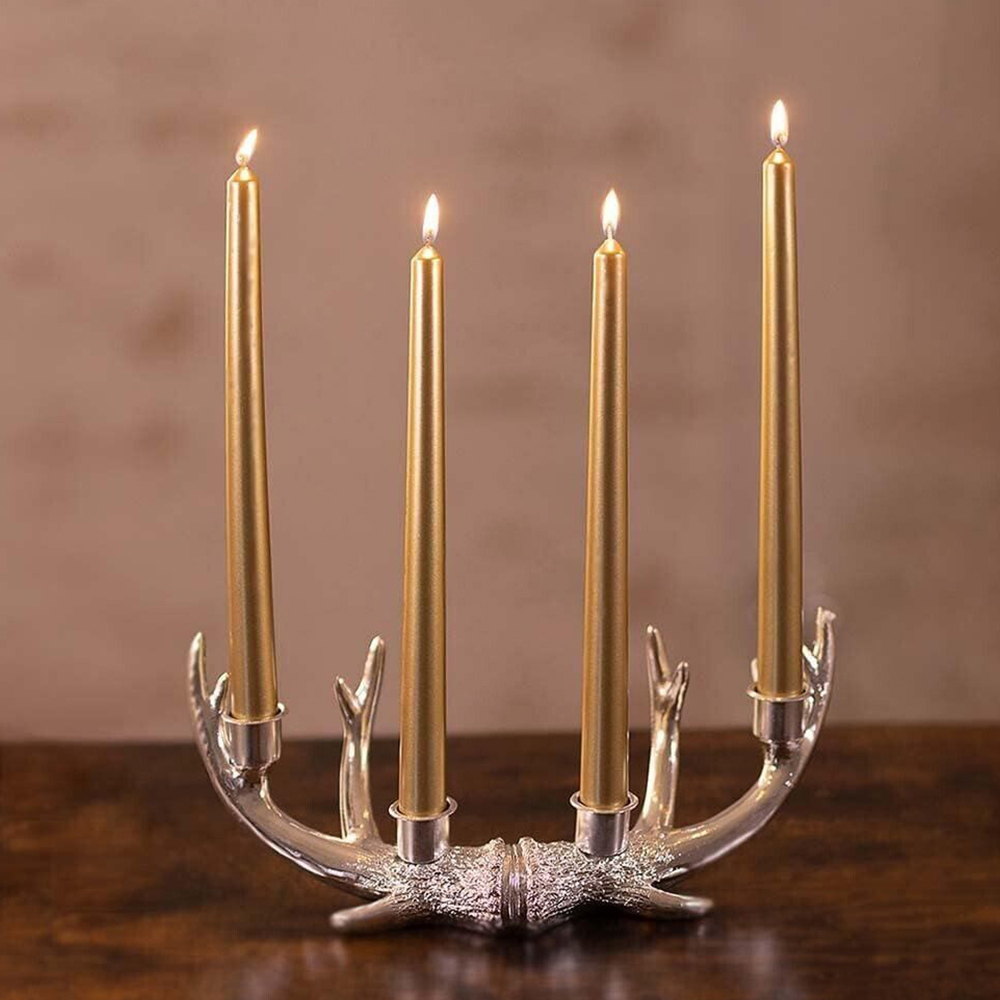 Enhance your holiday celebrations with four elegant Marco Paul silver taper candles. Perfect for adding a touch of sophisticated glamour to your Christmas table or mantelpiece, these 25cm candles create a captivating centrepiece for any special occasion. Their shimmering silver finish is complemented by a clean, smokeless, and fragrance-free burn, making them suitable for allergy sufferers.