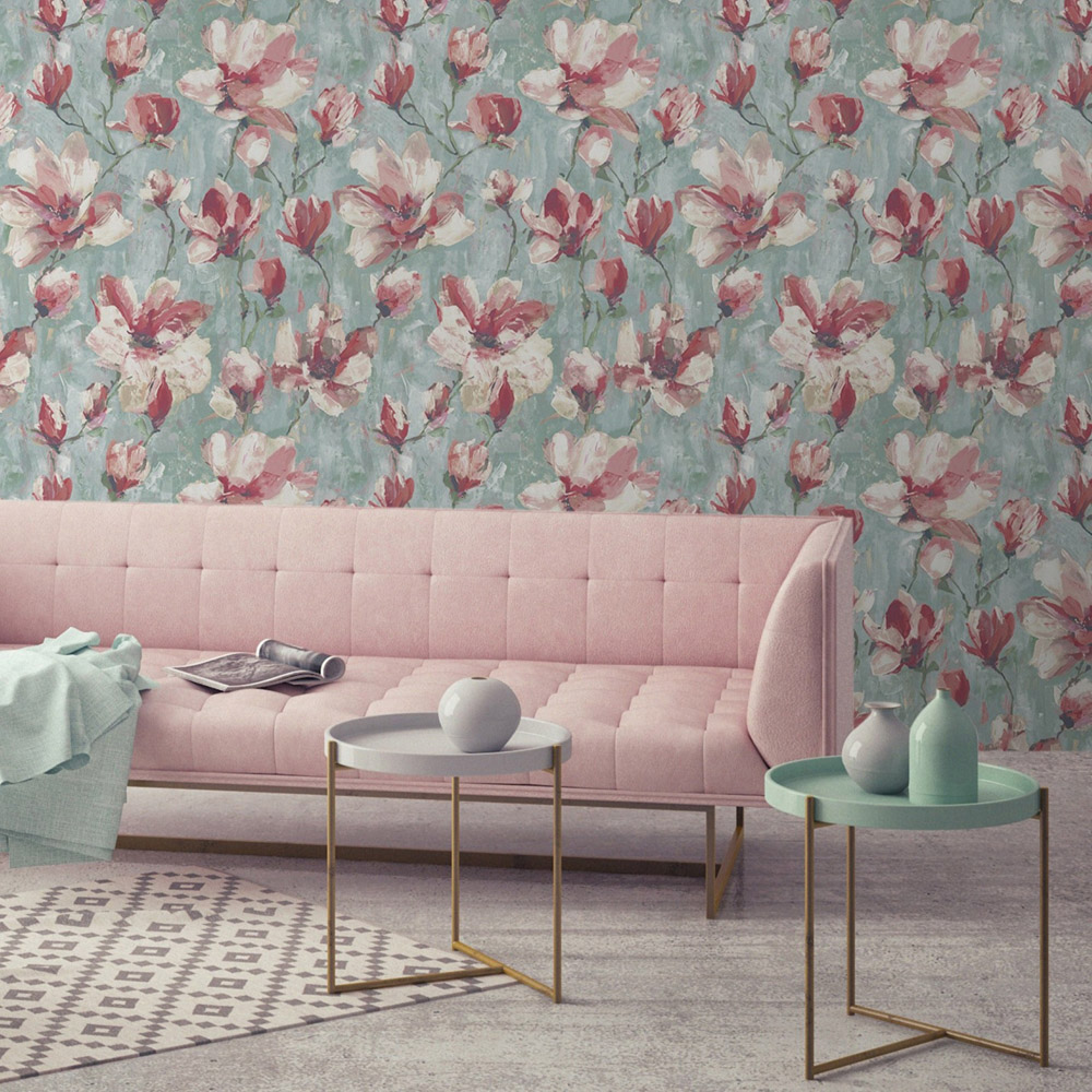 Transform your living space with the Camilla Floral Oil Painting wallpaper. Reflect your personality—joyful, daring, or tranquil—as this design plunges you into a world of emotions mirroring your mood. Dream, create, and decorate! This captivating wallpaper showcases stunning blossoms painted in a unique oil style, set against a soft, textured background. The brushstroke textures add depth, giving the impression of a real hand-painted canvas. A chalky teal and pink palette completes the look. Paste-the-wall application offers a clean and easy installation—simply apply paste directly to your walls. Pattern Number: A72401. Roll Length: 10m. Roll Width: 53cm. Pattern Match: Free Match.